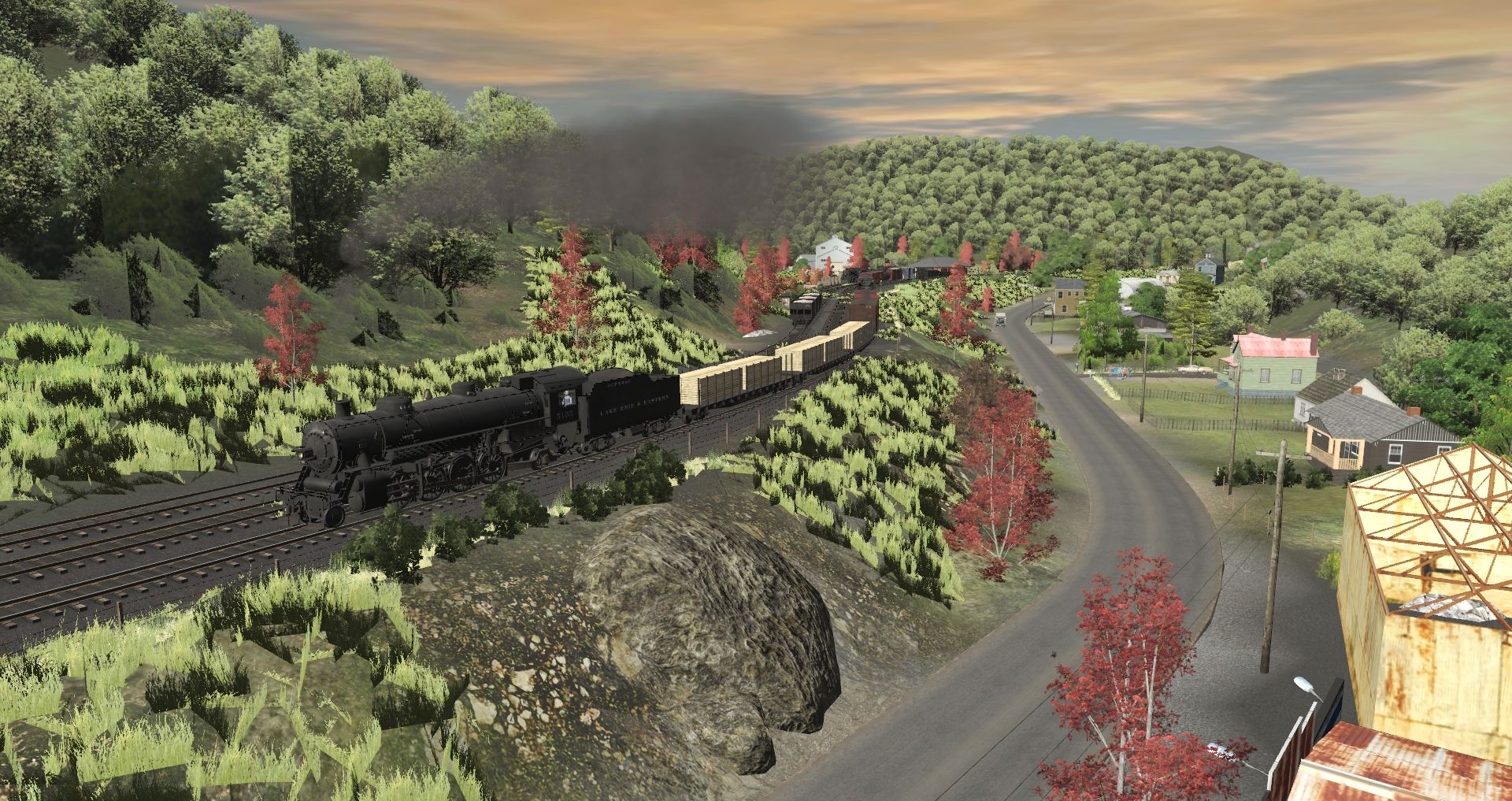 Tags: Trainz Railroad Simulator 2019, Coal Country - JointedRail.com Steam Era V4.2, Coal Country - JointedRail.com Steam Era V4.2 - Default, LE&E I-2a 2-8-2, LE&E I-2c 2-8-2, LE&E I-2d 2-8-2, LE&E I-2a Tender, 70ton AAR Flatcar NH, 70ton AAR Flatcar C&O, 40ft Boxcar B&URR A, 40ft Boxcar C&EI, USRA 55T H B&O Mid, 40ft Boxcar CARy, 70ton AAR Flatcar ATSF FT-V