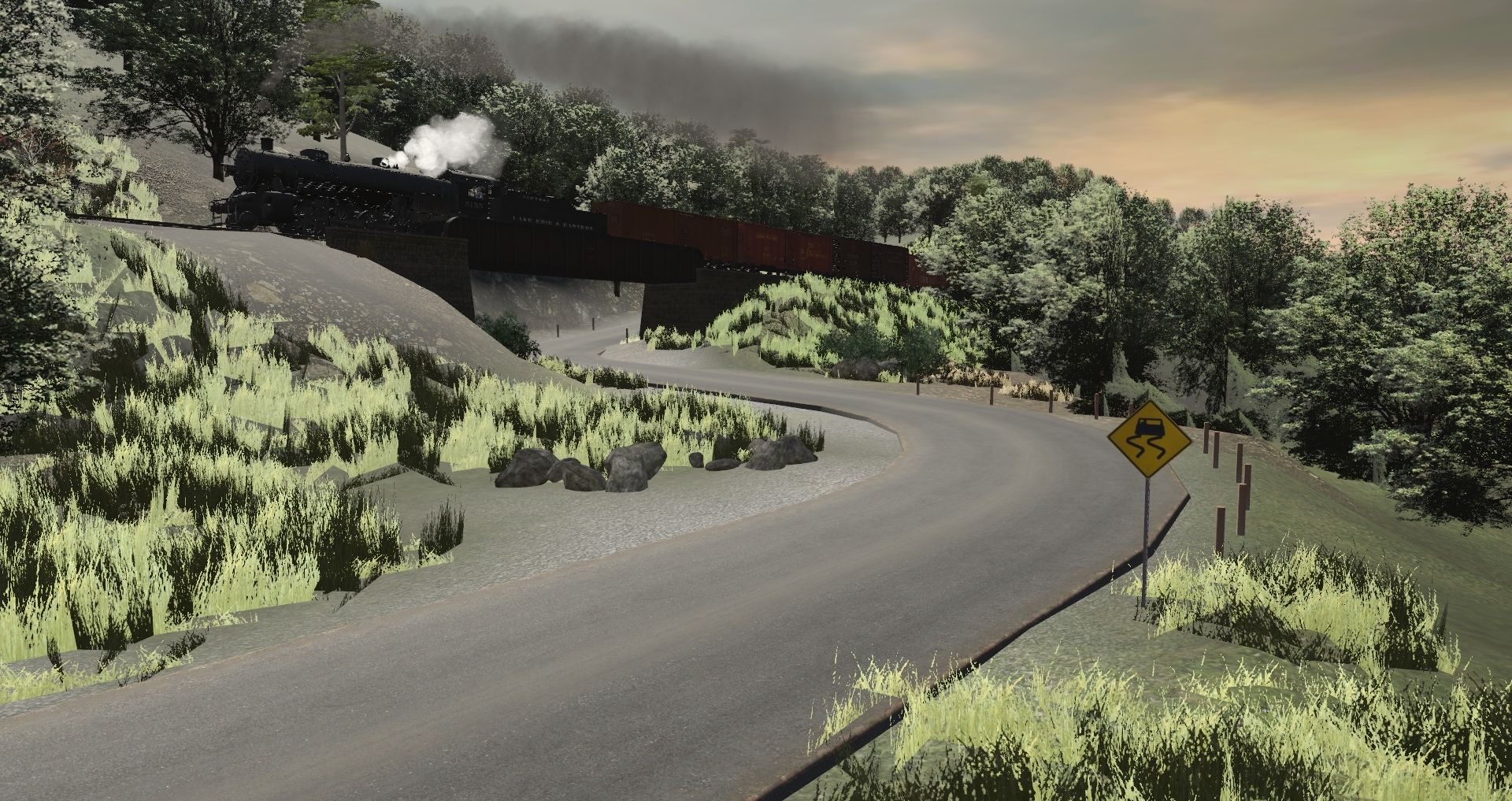 Tags: Trainz Railroad Simulator 2019, Coal Country - JointedRail.com Steam Era V4.2, Coal Country - JointedRail.com Steam Era V4.2 - Default, LE&E I-2a 2-8-2, LE&E I-2a Tender, 40ft Boxcar NYC, 40ft Boxcar OSL, 40ft Boxcar LE&E AAR, 40ft Boxcar Fowler B&M, 40ft Boxcar CP, 40ft Boxcar CARy, 38' X-3 Tank Car STLX, 70ton AAR Flatcar C&O, USRA C Gondola C&A