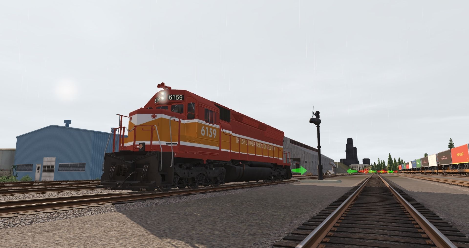 Tags: Trainz Railroad Simulator 2019, City and Country USA - Reforged, Default, BCW&S SD45, 40ft Hycube SLSF 19731, 40ft Hycube MKT 9037, TTX F89F Flat 89 TOFC Fictional Trailer Train