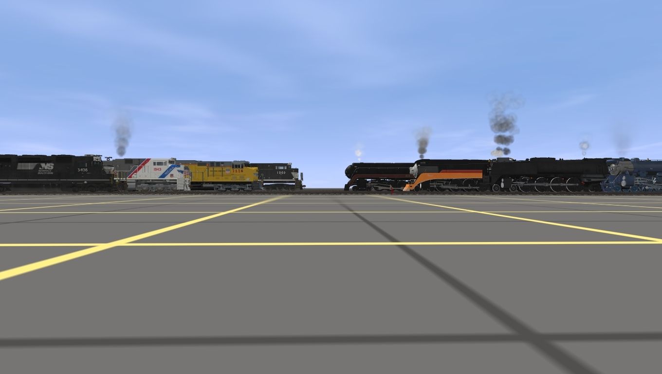 Tags: Trainz: A New Era, Test Route, new route, EMD SD40-2 NS (Ex-CR), UP 1943 Spirit of the Union Pacific, UPRR FEF-3 844, LNER Gresley A3 Flying Scotsman - Deflectors, ES44AC Tier 4 Locomotive UP, CNJ G3s Blue, SP GS-4 #4449 Daylight Engine, EMD SD70ACe Norfolk Southern, N&W Class J 611, LNER Gresley A3 Tender - FS Pegler Era, UPRR FEF Black oil tender