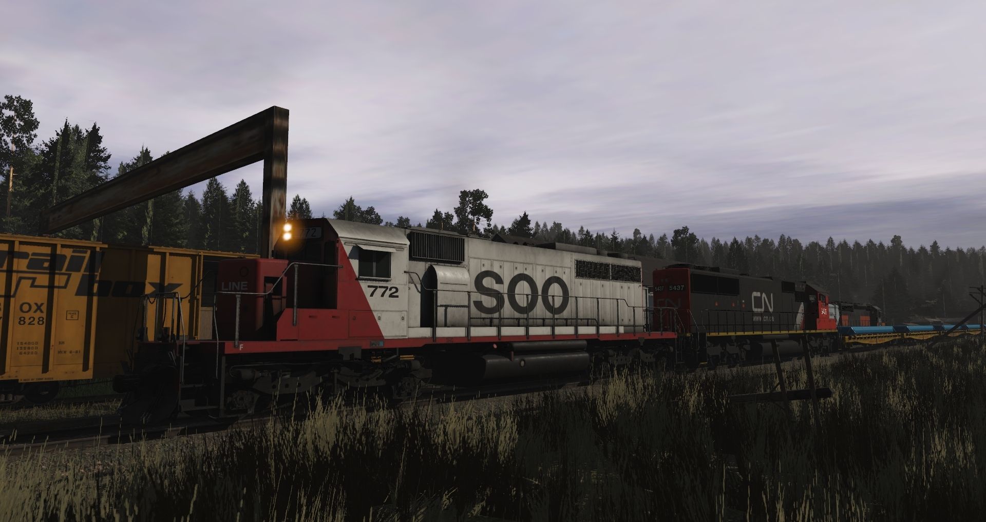 Tags: Trainz Railroad Simulator 2019, Eagle River Railway, 01 Monday - 14:57 21/05/2022 - 00:19:01, SOO SD40-2 Late V1, SD60 CN, SOO (ex MILW) SD40-2 Patched, AHW 50ft Boxcar FMC, RBOX 50ft Boxcar FMC, AGPX 95461 Trinity 3 Bay Hopper, SM 50ft Boxcar FMC, Utah Belt FMC 50ft Boxcar, AMOX LPG Tank, Utah Belt FMC 50ft Boxcar 2, UP 5188 3 bay