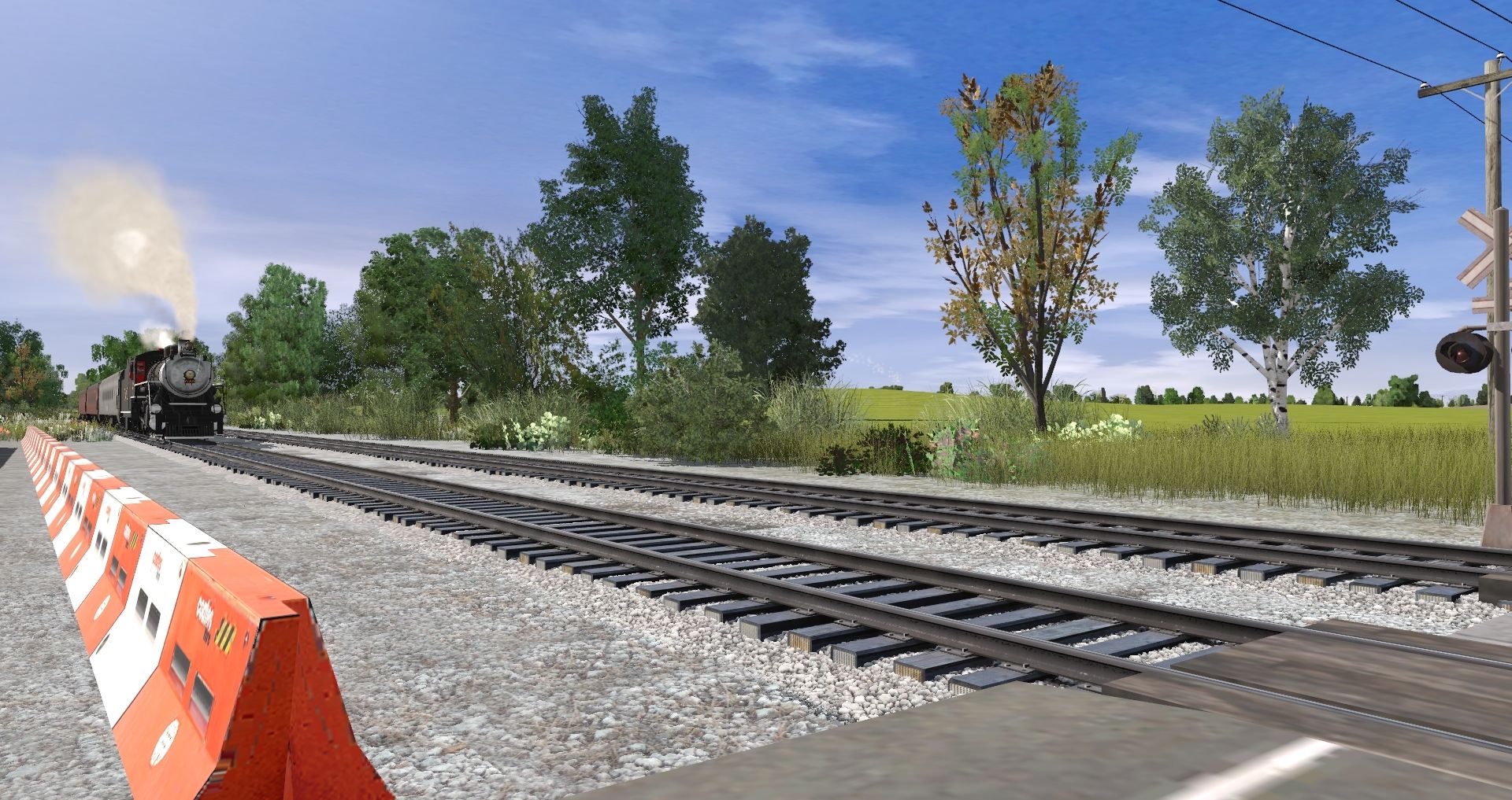 Tags: Trainz Railroad Simulator 2019, Midwestern Branch - TRS19, Default, Southern Ks Alco Engine, Southern Ks Alco Tender, Silver Coach, TVRM Coach Lounge, TVRM Observation Eden Isle