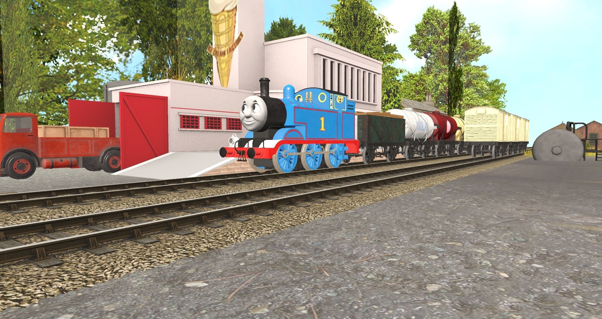 Tags: Trainz Railroad Simulator 2019, DFW - Sodor Ice Cream Factory Final, S3 - Thomas The Tank Engine, Engie's - TVS 7 Plank Wagon (Classic TS19), Engie's - TVS 14T Tanker Wagon (Type 1 TS19), Engie's - TVS LNER 12T Van (S8 - Onwards TS19), Engie's - TVS 14T Tanker Wagon (Type 2 TS19), Engie's - TVS LNER 12T Van (S2 - S8 TS19), Engie's - TVS SR 25T Pillbox Brakevan (TS19)