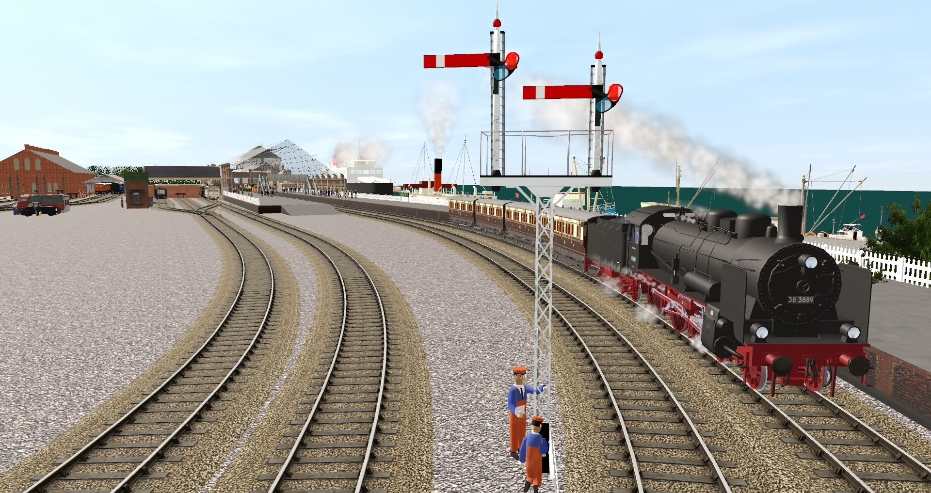 Tags: Trainz Railroad Simulator 2019, Norramby Station (Unlucky Tug's Map), DR BR38 P8, TTTE - Stepney, DR BR38 Tender, GWR 4 wheel brake 3rd, GWR 4 wheel composite, TTTE - CCT Van, Engie's - TVS LNWR 6T Van (TS19), Engie's - TVS SR CCT 4 Wheeled Van (TS19), Engie's - TVS S1 7 Plank Wagon (TS19), Engie's - TVS LNER 12T Van (S2 - S8 TS19), TTTE - Small China Clay Truck