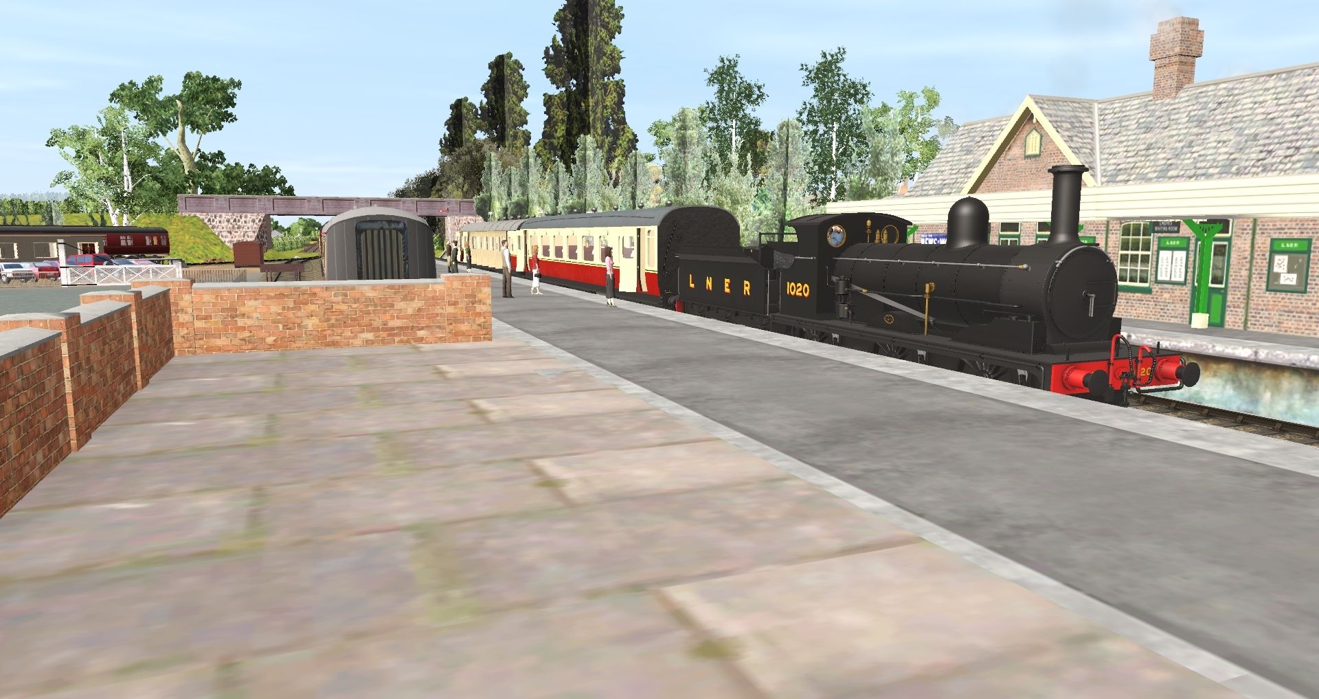 Tags: Trainz Railroad Simulator 2019, North Norfolk Railway England UK T2019, Default, Choco - LNER J15 No. 1020 (Smokebox Door), Choco - LNER J15 No. 1020's Tender, LNER Gresley 61'6 Composite, Engie's - TVS Special Brake Coach (TS19), Engie's - TVS Special Composite Coach (TS19), BR Mk1 SLSTP Maroon