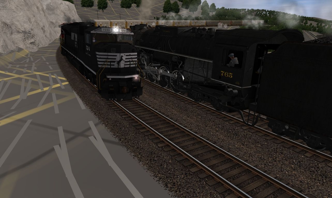 Tags: Trainz: A New Era, PRR Horseshoe Curve - Winter T:ANE 2021 Freetrack, NKP Berkshire Engine, SD80MAC Norfolk Southern, NS ES44AC PRR Heritage 8102, NS AC44C6CF #8520, NS ES44AC CR Heritage 8098, NKP Berkshire Tender, N&W Aux Tender Unlettered, NKP Tool Car RPCX 701, N&W Tool Car #9647, CSX Business Train 01 Dorm, 89Ft Autorack NS