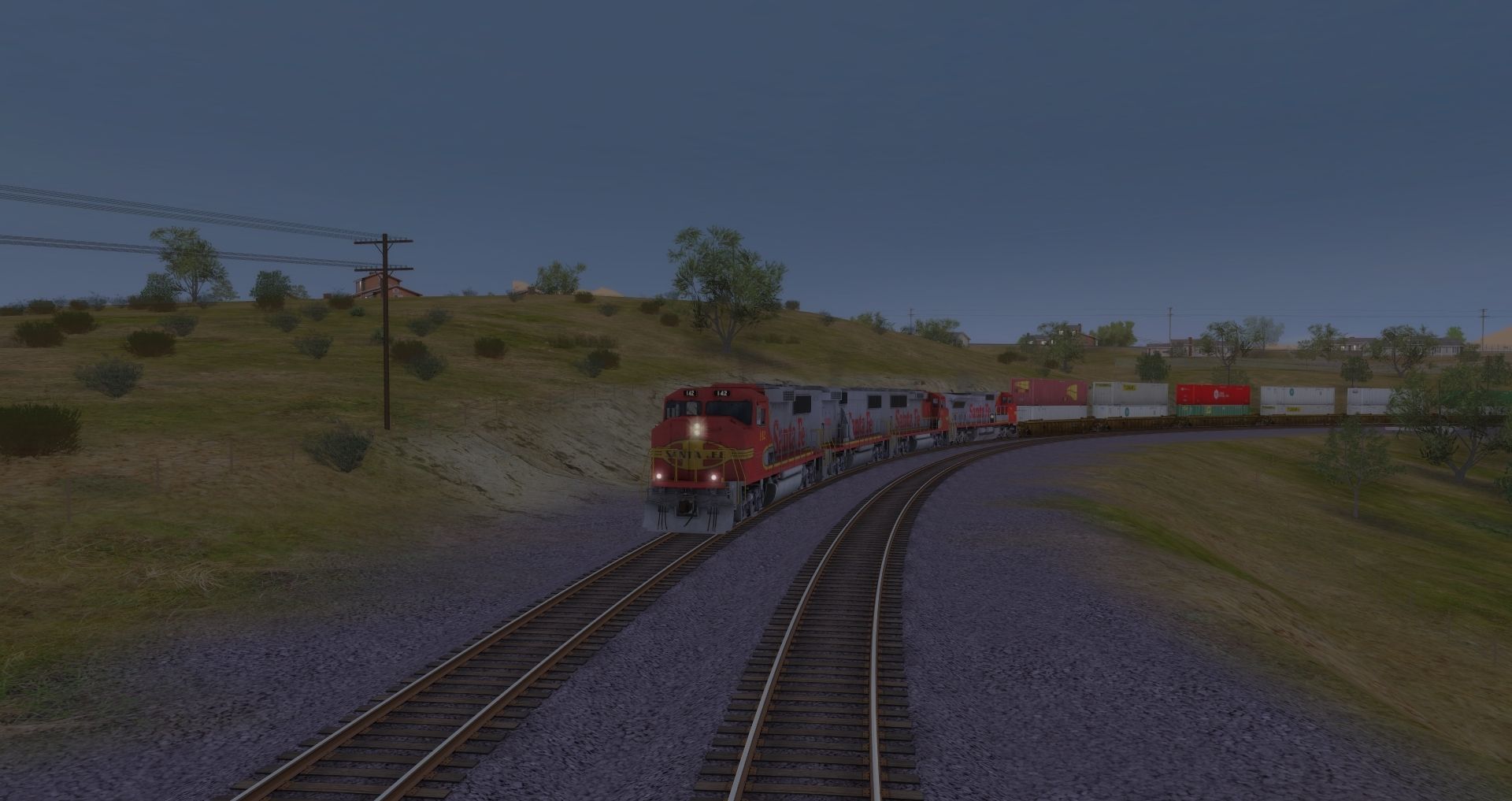 Posted by: Dashboy22 | Posted:2022-07-11 03:20:55 Caption: Tags: Trainz: A New Era, Mojave Sub Division, ATSF GP60M, ATSF GP60B, ATSF C40-8W, TTX NSC 53 Double stack Well