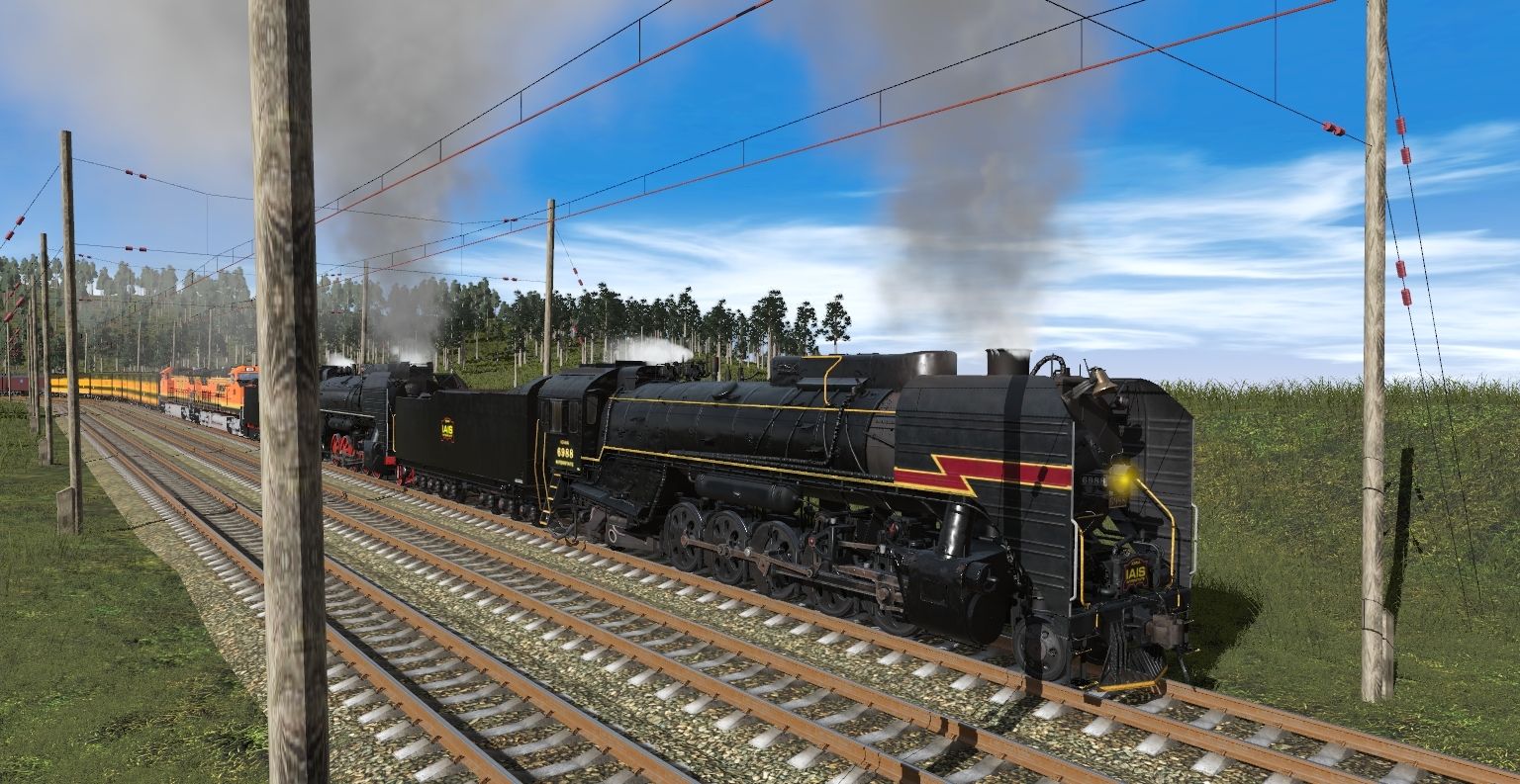 Tags: Trainz Railroad Simulator 2019, Eagle County V6, Default, IAIS QJ 6988 2018 TRS19, IAIS QJ 7081 TRS19, BNSF AC44C4M #599, BNSF Dash 9 #4723, IAIS QJ 6988 2018 Tender TRS19, IAIS QJ 7081 Tender TRS19, eb_storage_mail_express, eb_mail_storage, MVR (Milton Valley Railroad) 5300 Steel Baggage-Express Car, MVR (Milton Valley Railroad) 2780 Steel RPO-Baggage Combine, MVR (Milton Valley Railroad) 7800 Steel Coach