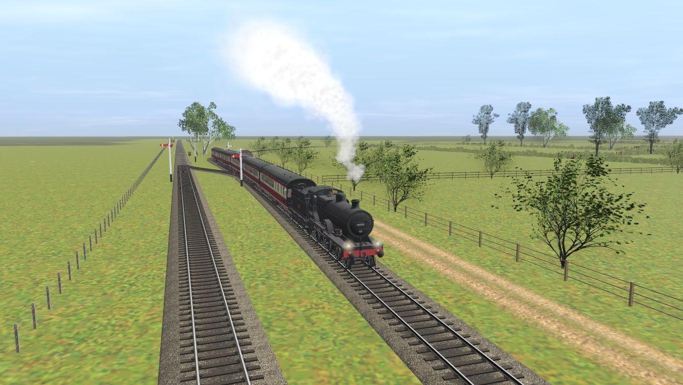 Tags: Trainz Railroad Simulator 2019, GER West Norfolk Railway, AA 40585 Fowler 2P 4-4-0 BR1A, AA Fowler 3500G BR1A, LMS BR49 BTK(D1696) Third Corridor Brake carriage - crimson & cream, LMS BR49 FK (D1747) First Corridor carriage - crimson & cream, LMS BR49 CK (D1791) Composite Corridor carriage - crimson & cream, LMS BR49 BFK (D1654) First Corridor Brake Carriage - crimson & cream