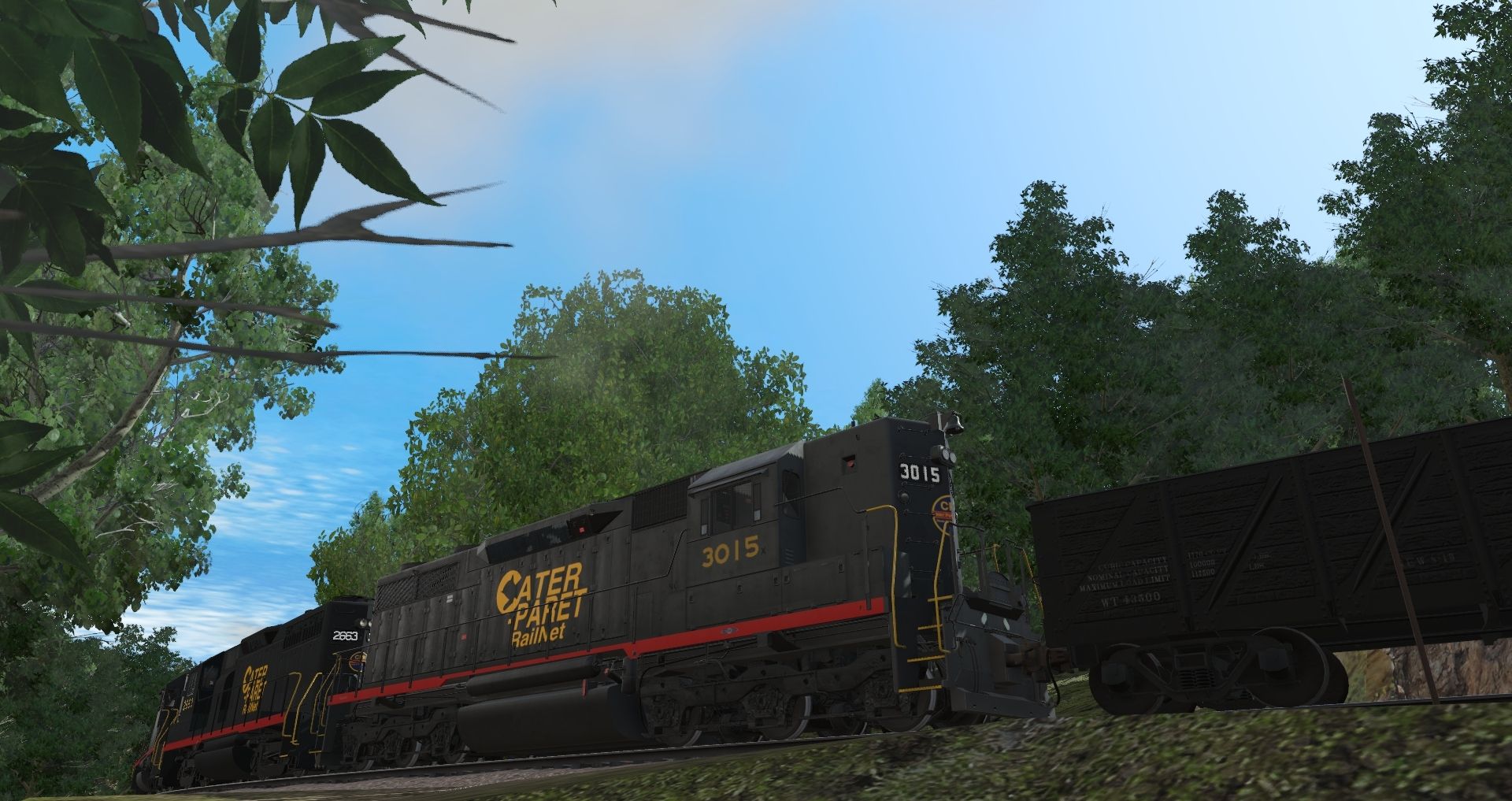Tags: Trainz Railroad Simulator 2019, Coal Country, Default, CPR GP35 (HH), CPR Mikado 2nd Versipn, CPR SD35, USRA C Gondola SOU, 38' X-3 Tank Car DCWX, CPR MS-1 Tender, TTX F89F Flat 89 TOFC Fictional Trailer Train, CPR BE-1 Express Boxcar - Early, BCW&S Coast Daylight Baggage-Chair Car, BGKRR Lightweight Coach, ATL Coach Lounge