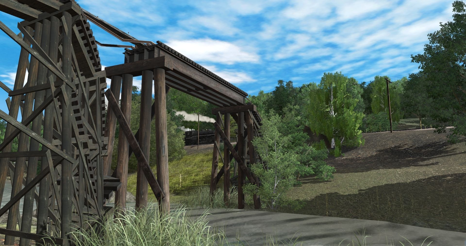 Tags: Trainz Railroad Simulator 2019, Coal Country, Default, CPR Mikado 2nd Versipn, CPR GP35 (HH), CPR SD35, CPR MS-1 Tender, 38' X-3 Tank Car DCWX, USRA C Gondola SOU, TTX F89F Flat 89 TOFC Fictional Trailer Train, CPR BE-1 Express Boxcar - Early, BCW&S Coast Daylight Baggage-Chair Car, BGKRR Lightweight Coach, ATL Coach Lounge