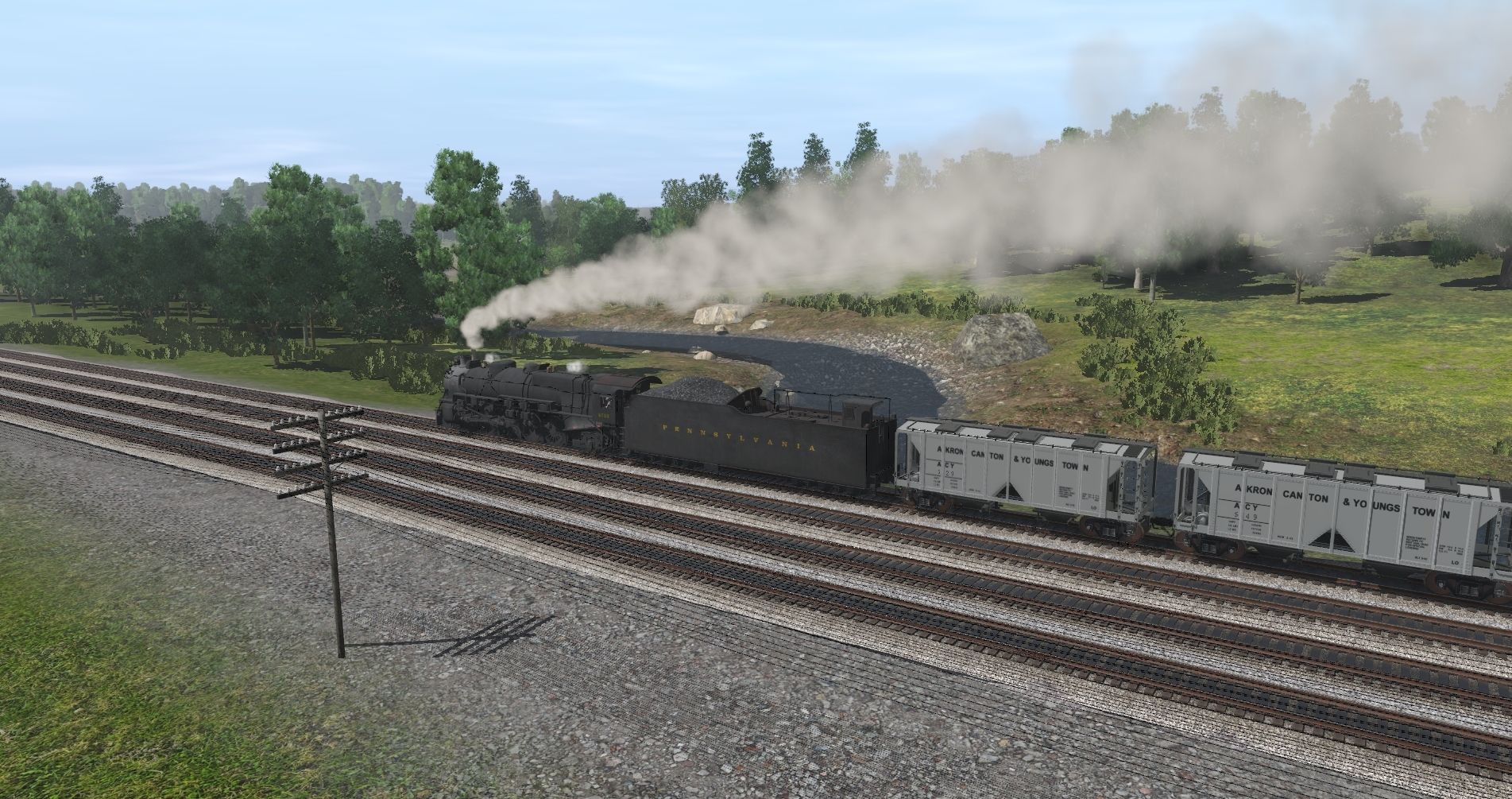 Tags: Trainz Railroad Simulator 2019, Pitts to Philly and More WIP 22a, M1a west test, PRR M1b Engine, DES Hopper ACF 2 bay 1958 cu ft ACY, DES Hopper ACF 2 bay 1958 cu ft Ralston Purina, D&H cement contaner car, PRR M1b Tender, 40ft PRR stockcar, 40ft Boxcar USRA PRR 1, Magnolia 2-dome tankcar, GATX Tank GATC 10000 (Black), Custom 40' Boxcar - REES Fishing Outfitters, 40ft PRR X31b boxcar