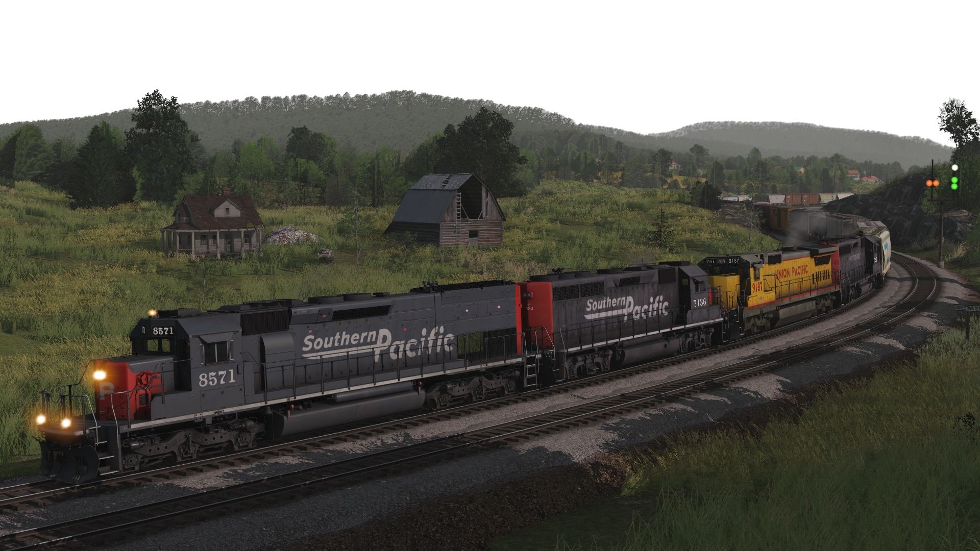 Tags: Trainz Railroad Simulator 2019, Appalachian Right of Way verison 1.0, SP SD40T-2 speedletter, GP40M-2 SP SL #7107-7138, UP C40-8, GP40-2 SSW 7248-7273, CSX GP38-2 YN-1 (ex-SCL), CSX (ex-CR) YN2 SD40-2, CSX SW1500-a, GP15T CSX-g, ACFX #27801 3 Bay ACF, GATX ACF Centerflow 4 Bay round hatch W, TILX 20800 gal tank car OMYA Weathered