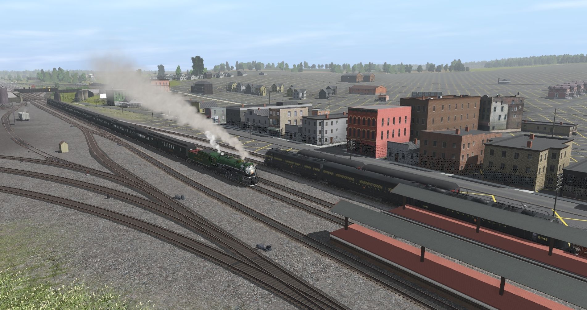 Tags: Trainz Railroad Simulator 2019, Pitts to Philly and More WIP 22a, Just testng fun, PRR EMD E7A DGLE 5846 c.1948 Closed Pilot, PRR EMD E7B DGLE, Southern Ps-4 Engine Modernized, PRR EMD E7A DGLE 5841 c.1948 Open Pilot, PRR K4s Engine PreWar, PRR K4s Engine Deflectors, PRR Baggage B60b Keystone, PRR Baggage B60b Postwar MS-60 Old Doors, Southern Ps-4 Tender Modernized, Southern Railway Post Office, Southern Baggage-Buffet-Lounge V2