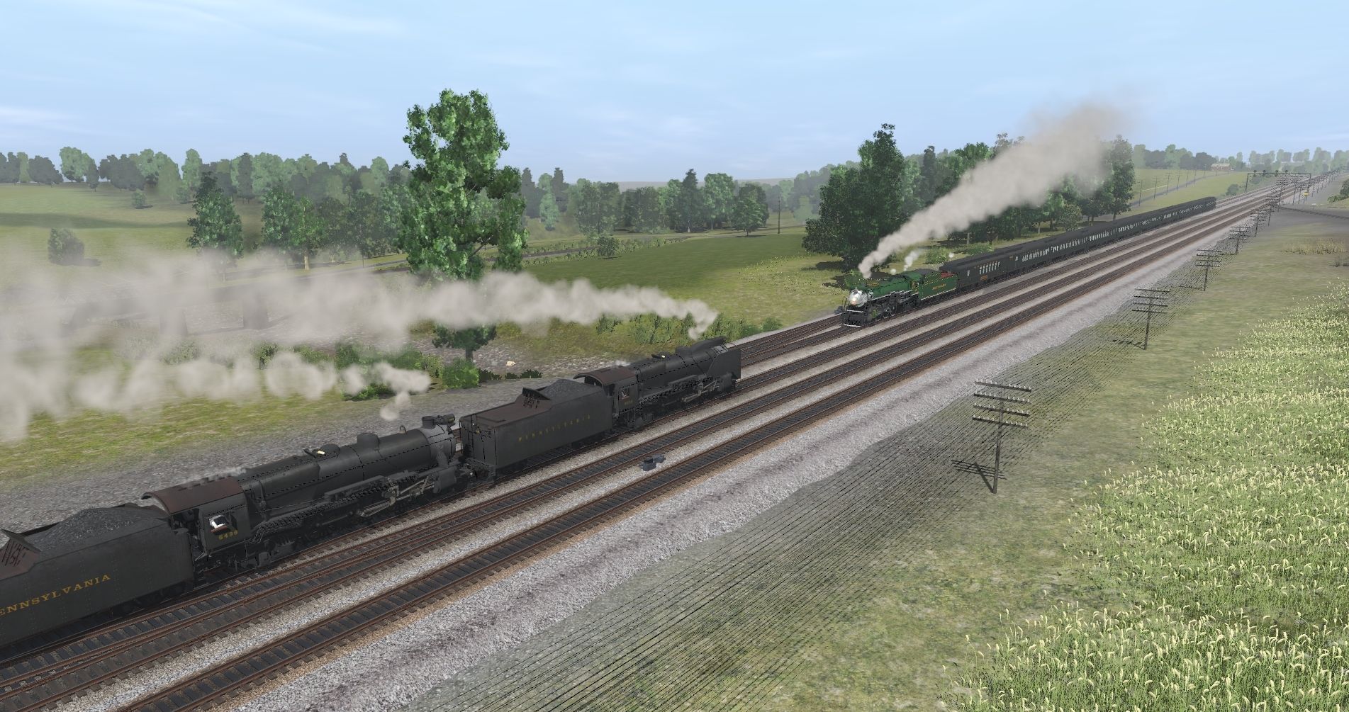 Tags: Trainz Railroad Simulator 2019, Pitts to Philly and More WIP 22a, Just testng fun, PRR K4s Engine PreWar, PRR K4s Engine Deflectors, Southern Ps-4 Engine Modernized, PRR EMD E7A DGLE 5841 c.1948 Open Pilot, PRR EMD E7B DGLE, PRR EMD E7A DGLE 5846 c.1948 Closed Pilot, PRR B60b Baggage, PRR K4s Tender PreWar, PRR B60b Express, PRR K4s Tender Deflectors, PRR B60 Baggage