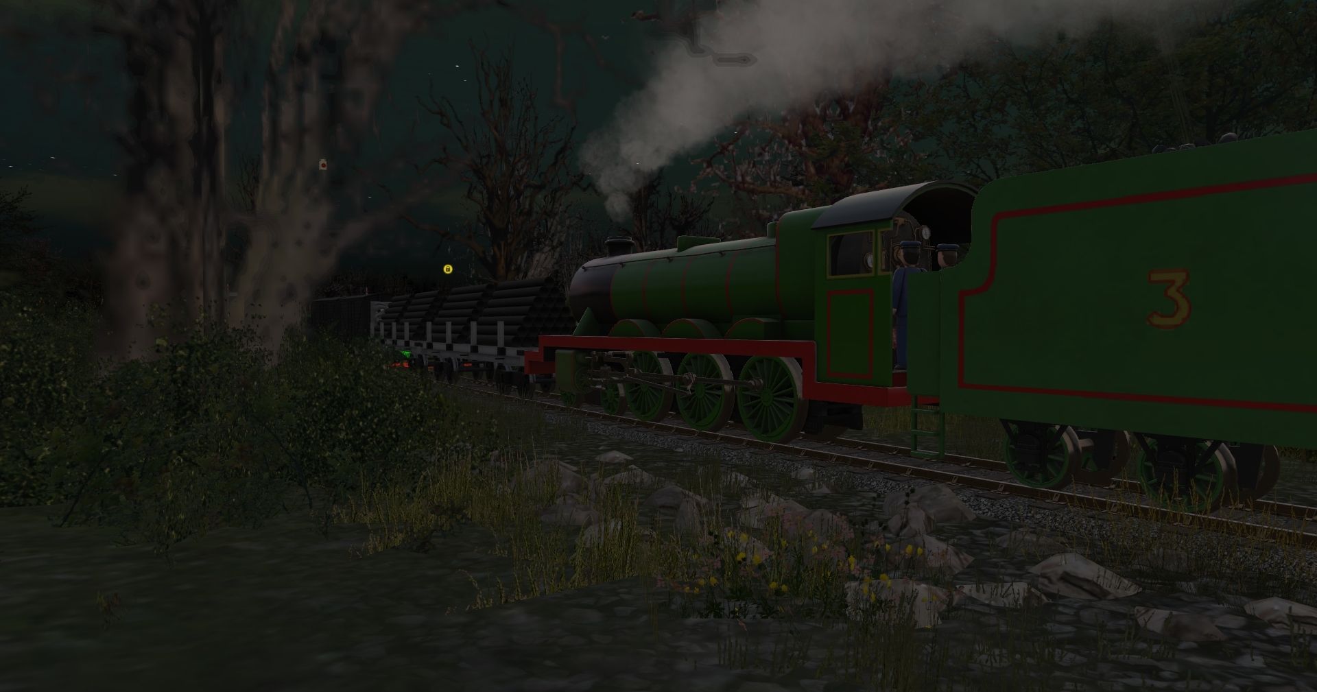 Tags: Trainz Railroad Simulator 2019, S5 - Hawin Lake (Haunted Henry), SudrianRails - Henry's Tender, SudrianRails - Henry the Green Engine (New Shape), Engie's - TVS GWR J28 Macaw Flatbed (TS19), Engie's - TVS LNWR 6T Van (TS19), TTTE - 7 plank, TTTE - 7 plank (rusty)