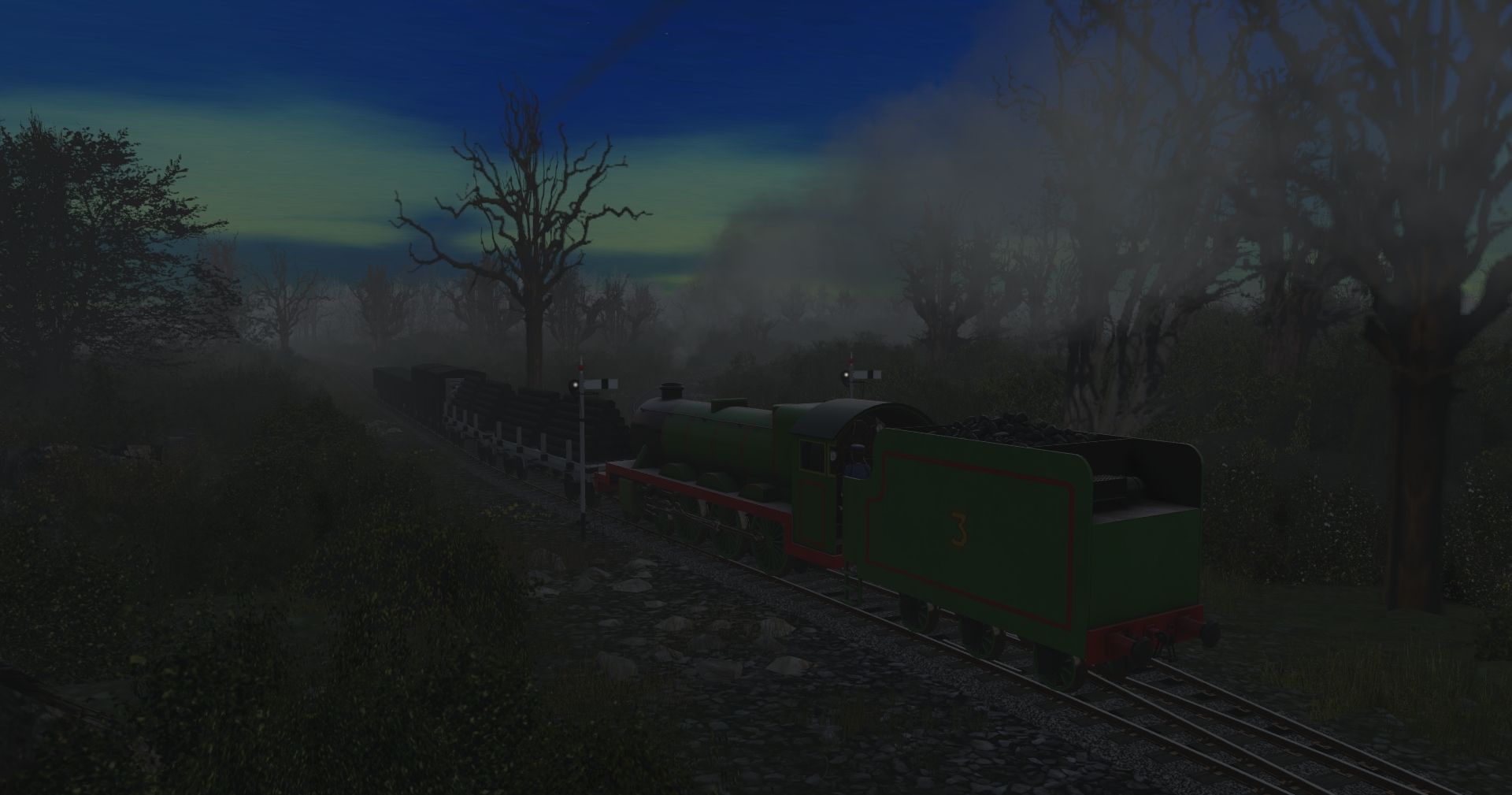 Tags: Trainz Railroad Simulator 2019, S5 - Hawin Lake (Haunted Henry), SudrianRails - Henry's Tender, SudrianRails - Henry the Green Engine (New Shape), Engie's - TVS GWR J28 Macaw Flatbed (TS19), Engie's - TVS LNWR 6T Van (TS19), TTTE - 7 plank, TTTE - 7 plank (rusty)