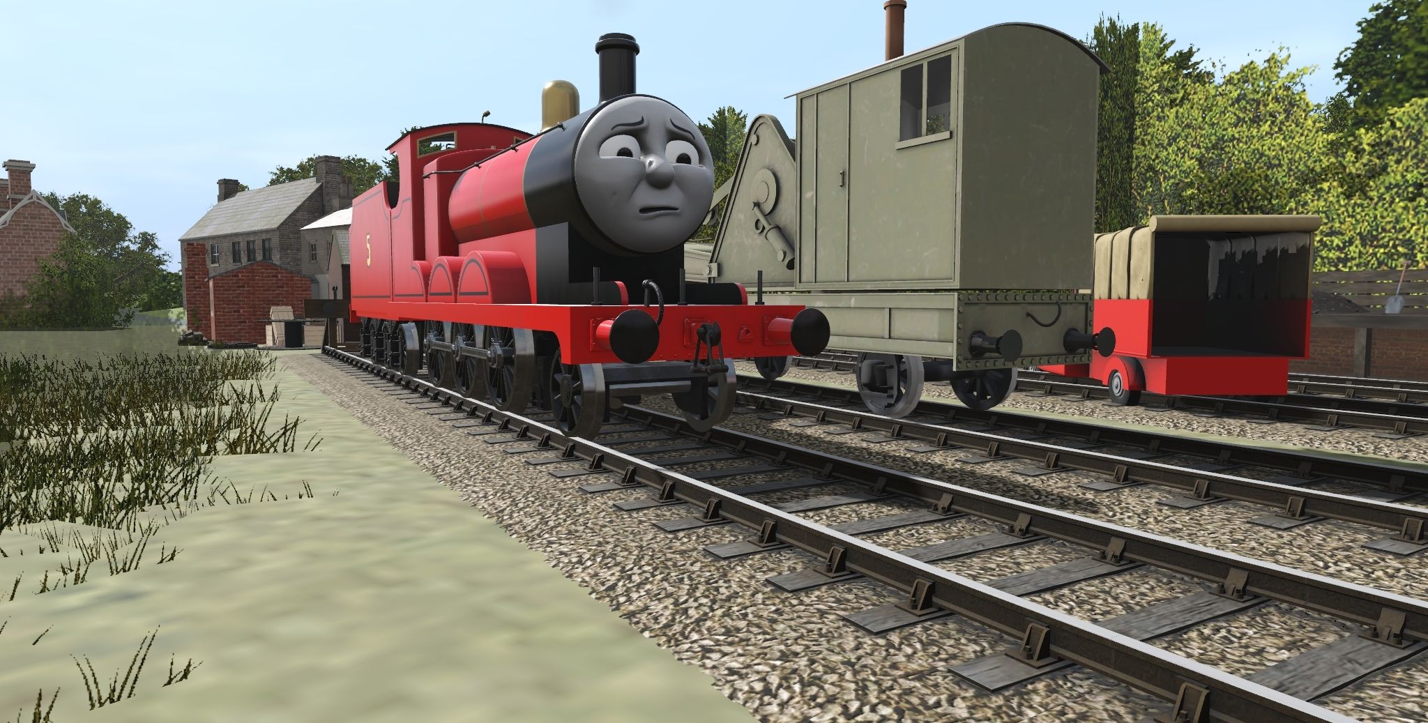 Tags: Trainz Railroad Simulator 2019, Abbey to Wellsworths 6-CGI, Default, TTTE - James the red engine, TTTE - Percy the Small Engine S2 (TRS19), Horrid Lorry 2, Horrid Lorry 1, Sodor Lorry, Sodor Breakdown Crane Lowered, TTTE - James's Tender, Sodor Breakdown Flat Truck