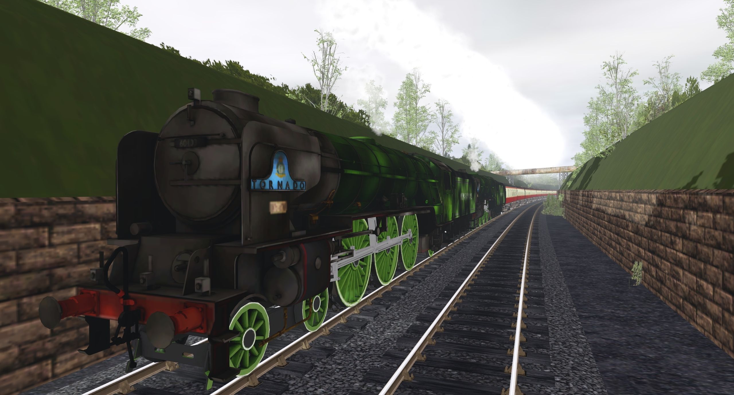 Tags: Trainz Railroad Simulator 2019, ECML EDINBURGH - DUNDEE, Default, Flying Cam, LNER A1 60133 Tornado, LNER 5000 Gallon Tender Apple Green Tornado, BR Mk1 BSK Carmine, BR Mk1 RFO Carmine