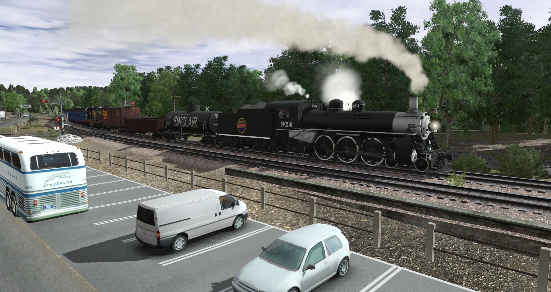 Tags: Trainz Railroad Simulator 2019, Coal Country, Default, CPR 4-6-2 924 Mexico Years, CPR GP38-2 ph1, CPR 924 Mexico Tender, 38' X-3 Tank Car Sinclair, USRA C Gondola C&A, 40ft Boxcar CPR, CPR B Railway Post Office, CPR B Baggage-Buffet-Lounge V1, CPR B Sleeper 14 Section V1, CPR B Sleeper 10-2 V1, CPR B Dining Car