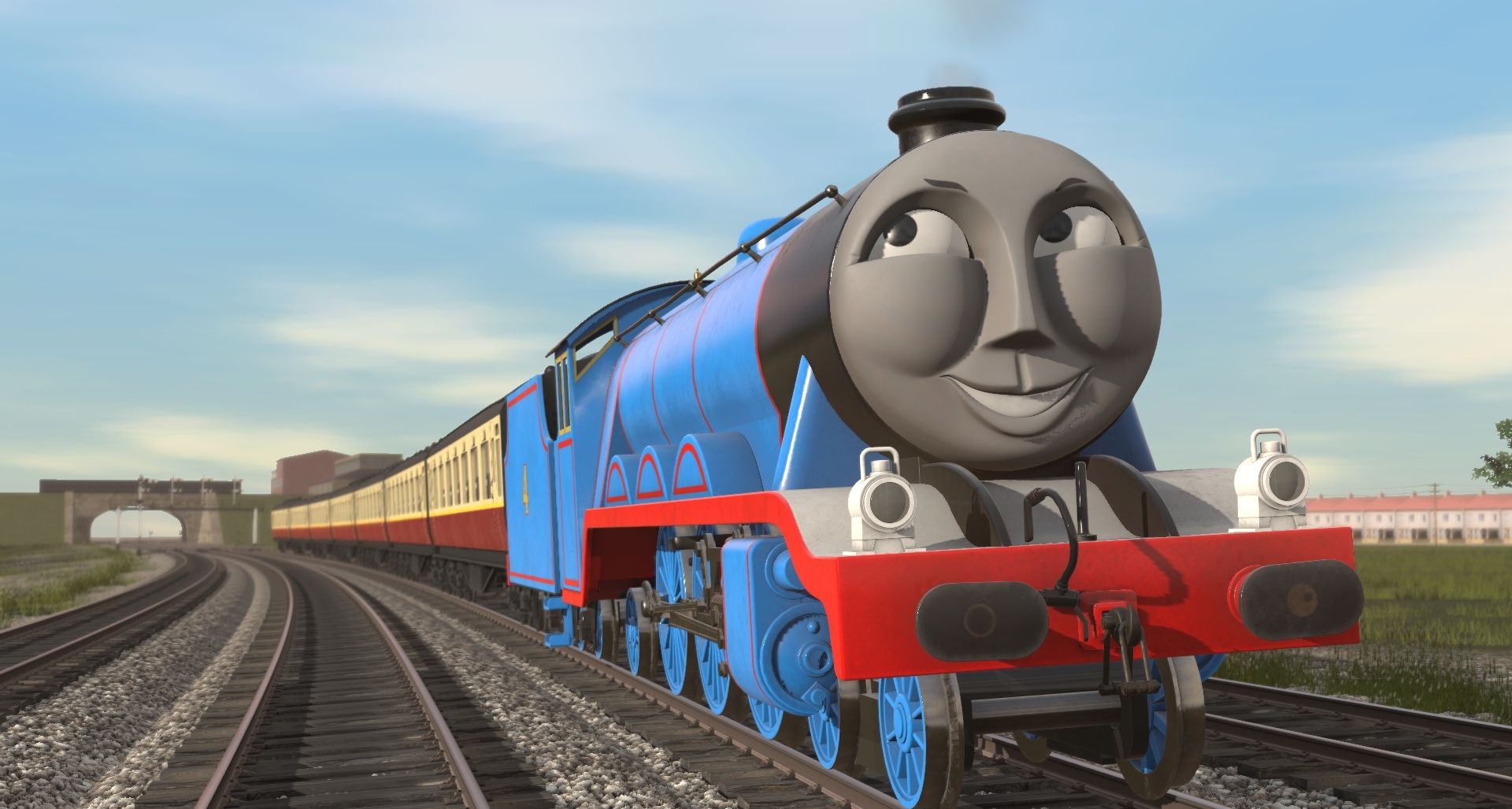 Tags: Trainz Railroad Simulator 2019, Station, Flying Cam, TSI - Gordon The Big Engine, TSI - Gordon's Tender, Engie's - TVS Special Composite Coach (TS19)