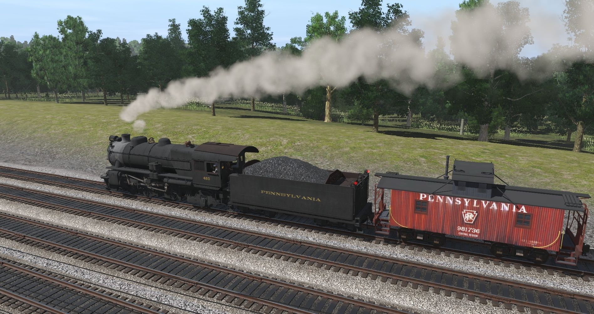 Tags: Trainz Railroad Simulator 2019, Pitts to Philly and More WIP 22a, Shifting, PRR E6s Engine, PRR Caboose N6B Gray Center, PRR E6s Tender, PRR Baggage B60b Keystone, PRR Baggage B60b Postwar MS-60 Old Doors