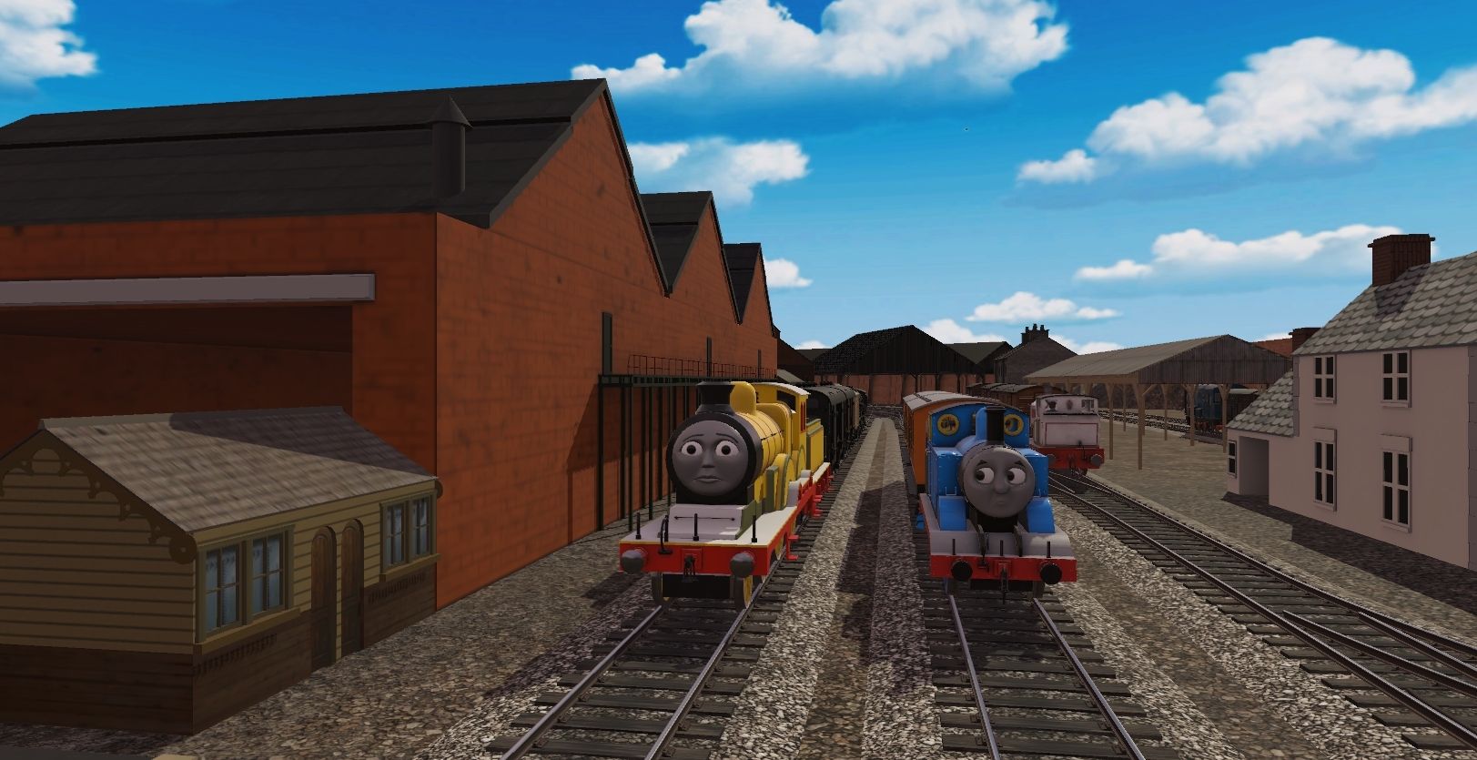 Tags: Trainz Railroad Simulator 2019, Knapford Shunting Yard Diorama, Default, SF - CGI Thomas the Tank Engine (PBR), TW3D - Molly the Yellow Engine, CGI | Stanley the Silver Engine (PBR), CGI | Sidney the Forgetfull Engine (PBR), TW3D - Molly's Tender, TTTE - Annie [TRS19], Engie's - TVS SR CCT 4 Wheeled Van (TS19), TTTE - Clarabel [TRS19], Engie's - TVS SR CCT 8 Wheeled Van Type 1 (TS19), Engie's - TVS LNER 12T Van (S2 - S8 TS19), Engie's - TVS 10T Saxa Salt Van (TS19)