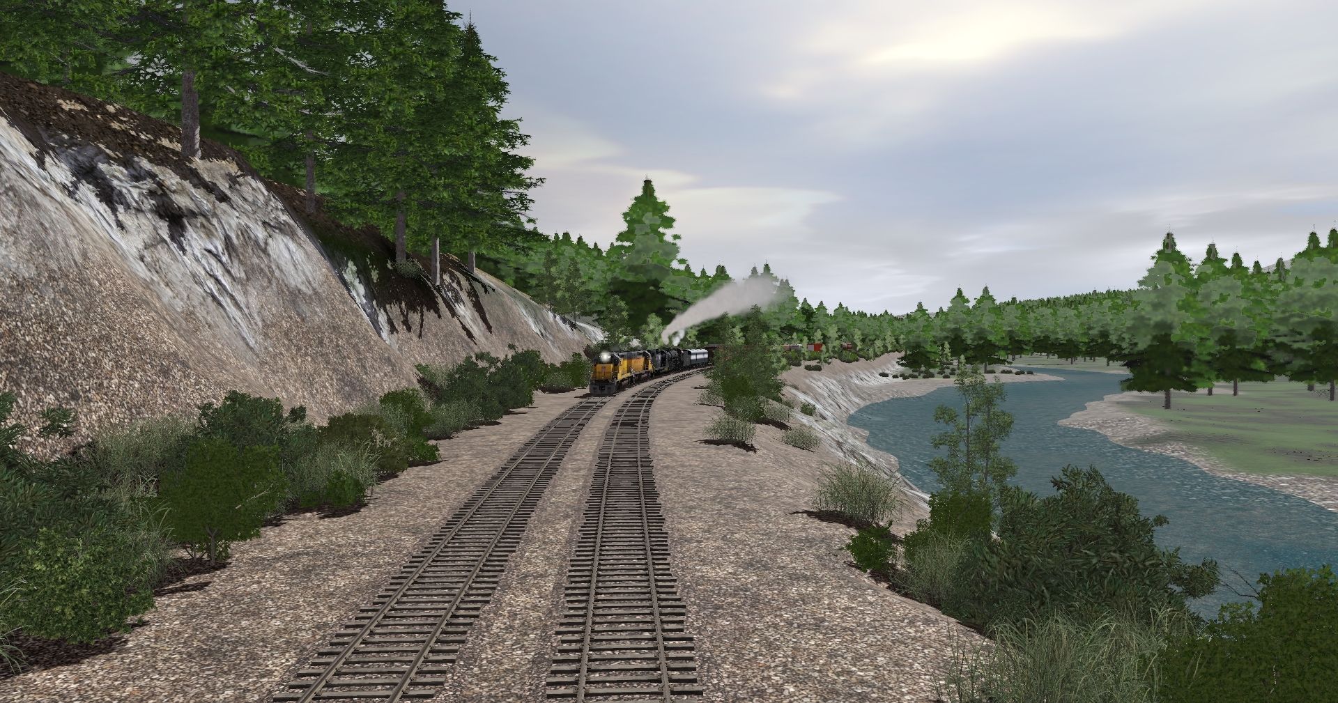 Tags: Trainz Railroad Simulator 2019, Canadian Rocky Mountains - Golden BC, UP SD40-2, NS GP38-2, Frisco 1522 Engine, Frisco 1522 Tender, Frisco 1522 01 Tool Car Black Gold, 50' Boxcar CB&Q Early 2, 50ft Hi-Cube Boxcar MP (Weathered), CPWX Centerflow Hopper #607623, SOO Centerflow Hopper #122932, CP Centerflow Hopper #386435, CP Rail 52'8' Bulkhead Flatcar3