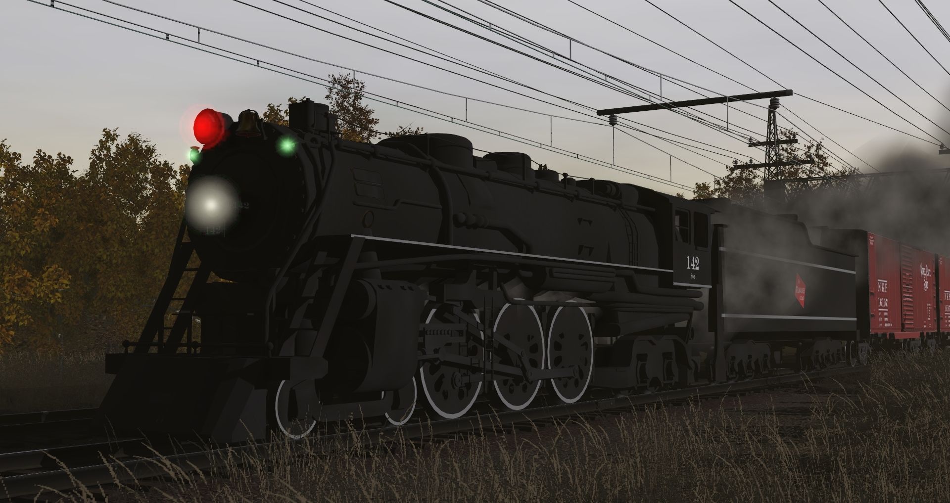 Tags: Trainz Railroad Simulator 2019, Coalmint Mountains Railroad, Default, MILW F6a Baltic Engine, MILW F6a Tender, NKP, Oil Tanker UTLX 60 Ft, NH Class NE-5 Caboose McG2