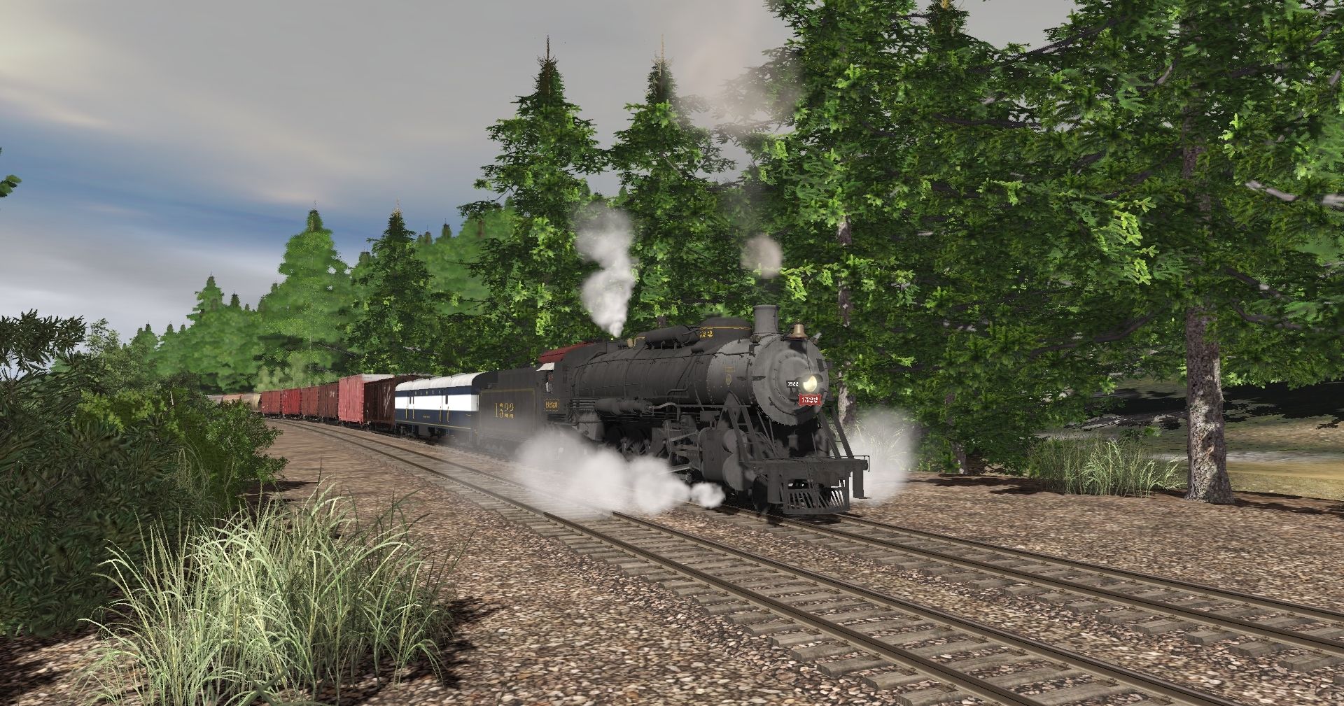 Tags: Trainz Railroad Simulator 2019, Canadian Rocky Mountains - Golden BC, Frisco 1522 Engine, USAX GP7L #1829, Frisco 1522 Tender, Frisco 1522 01 Tool Car Black Gold, 50' Boxcar CB&Q Early 2, 50ft Hi-Cube Boxcar MP (Weathered), CPWX Centerflow Hopper #607623, CP Centerflow Hopper #386435, CP Rail 52'8' Bulkhead Flatcar3, AS-Boxcar CP-Rail 4 (graffiti), AS-Boxcar CP Railway 2