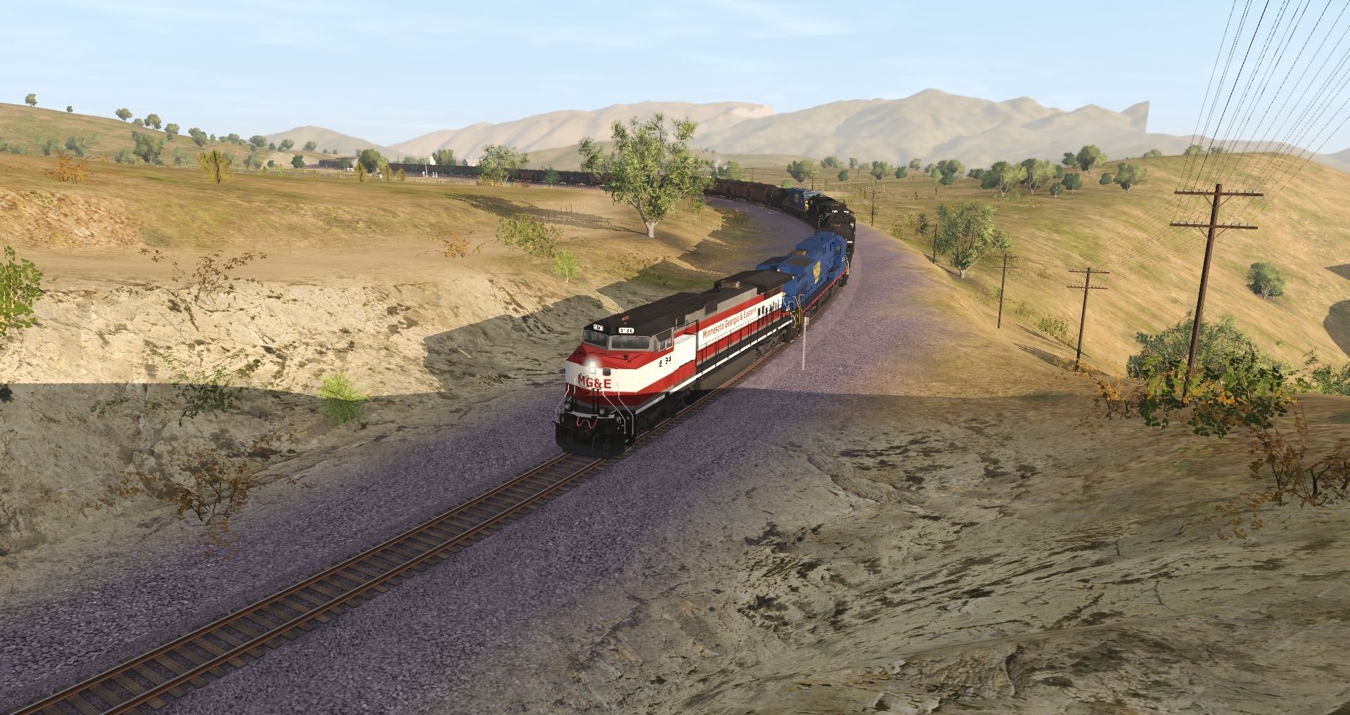 Tags: Trainz Railroad Simulator 2019, Mojave Sub Division, Default, CPR B C45-9 HH, KWSC C40-9 hh, MG&E C45-9W, CPR GP40-2, CSX ES44DC, SOU 100 Ton Hopper, RPPX 100 Ton Hopper