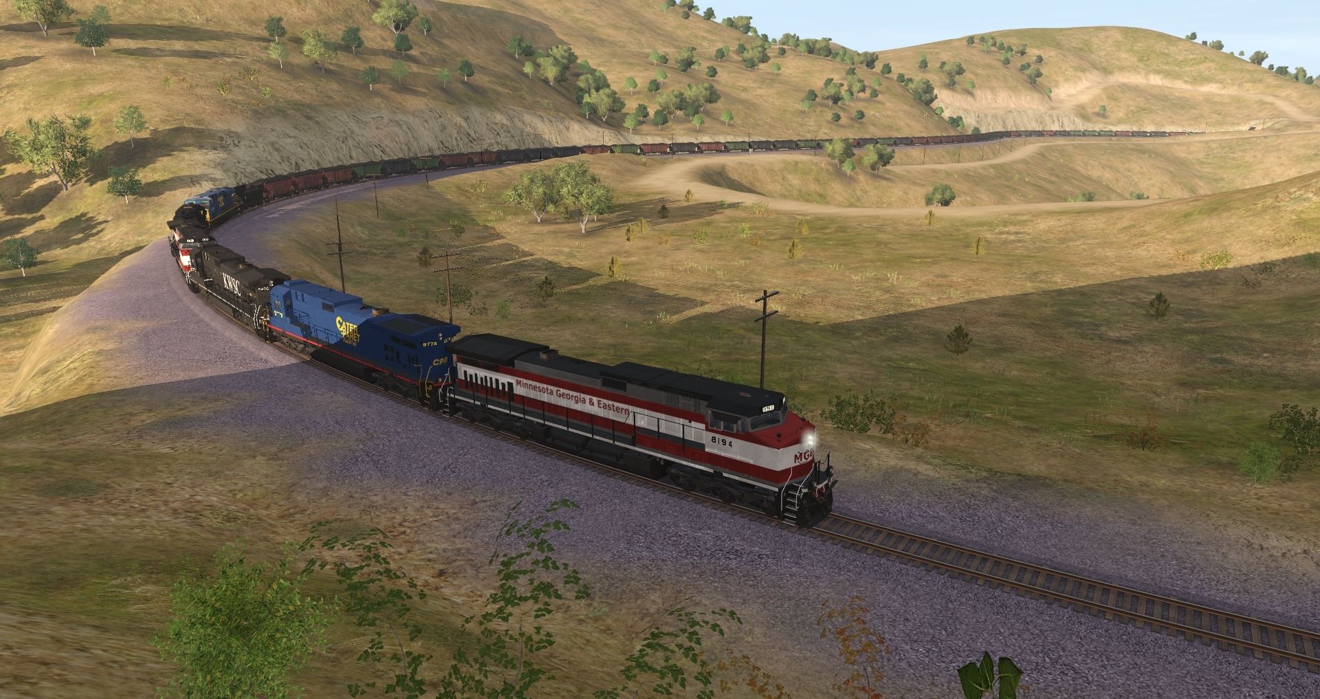 Tags: Trainz Railroad Simulator 2019, Mojave Sub Division, Default, CPR B C45-9 HH, KWSC C40-9 hh, MG&E C45-9W, CPR GP40-2, CSX ES44DC, SOU 100 Ton Hopper, RPPX 100 Ton Hopper
