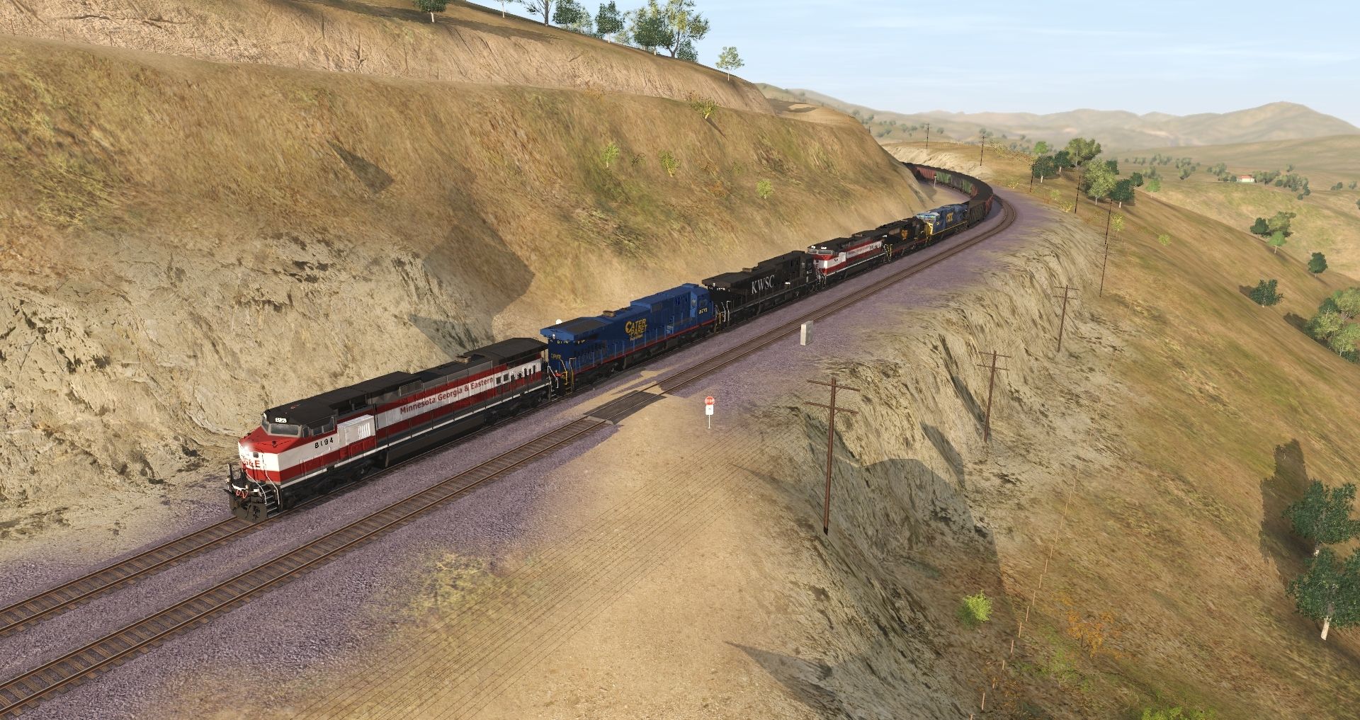 Tags: Trainz Railroad Simulator 2019, Mojave Sub Division, Default, CPR B C45-9 HH, KWSC C40-9 hh, MG&E C45-9W, CPR GP40-2, CSX ES44DC, SOU 100 Ton Hopper, RPPX 100 Ton Hopper