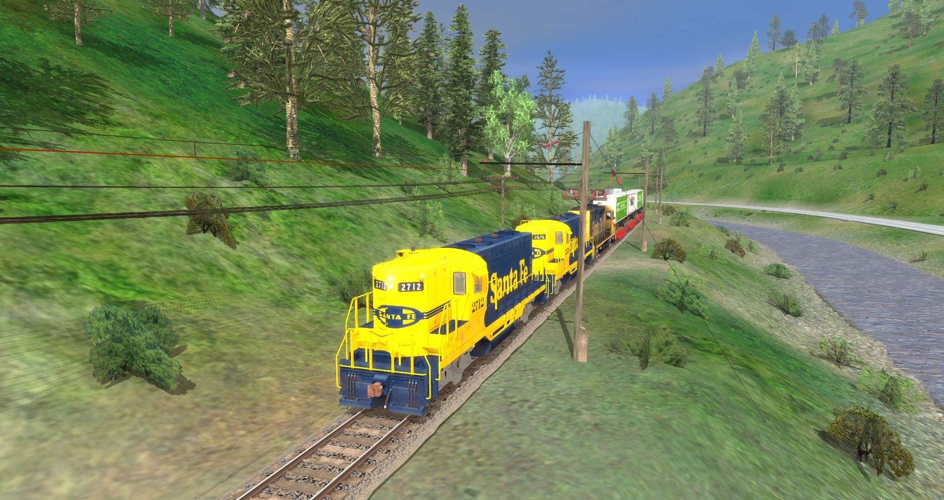 Tags: Trainz: A New Era, Avery - Drexel, EMD GP7 ATSF #2712, EMD GP7 ATSF-Freight Warbonnet Livery, ATSF GP35 Yellow Bonnet, MILW-Flat-50ft-L-07, MILW-Flat-50ft-01, MILW-Flat-50ft-02, MILW-Flat-50ft-03, MILW-Boxcar-50ft-L-04, MILW 60ft Boxcar PS (Autoparts), Mill Gondola 52' Railgon, IC Airslide Hopper