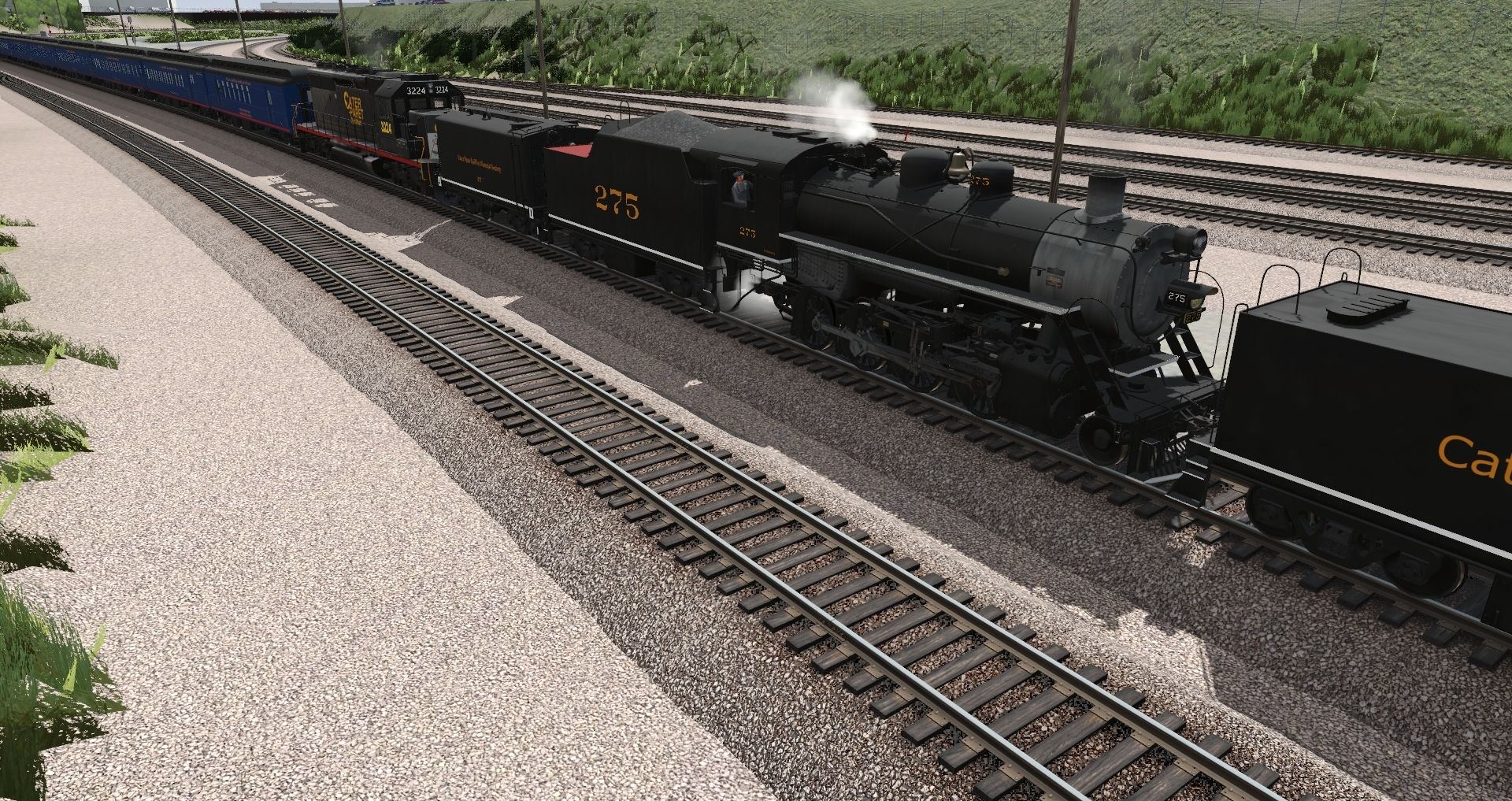 Tags: Trainz Railroad Simulator 2019, NS Atlanta - Anniston, Default, CPR Mikado 2nd Versipn, CPR 275, CPR(1996) SD40-2 Face, CPR GP38-2 ph1, CPR 4-6-2 924 Mexico Years, CPR 4650 Tender 70s, CPR 275 Tender, CPR 275 Aux Tender, CPR B Observation 3-2, CPR B Sleeper 8-1-2 V1, CPR B Dining Car