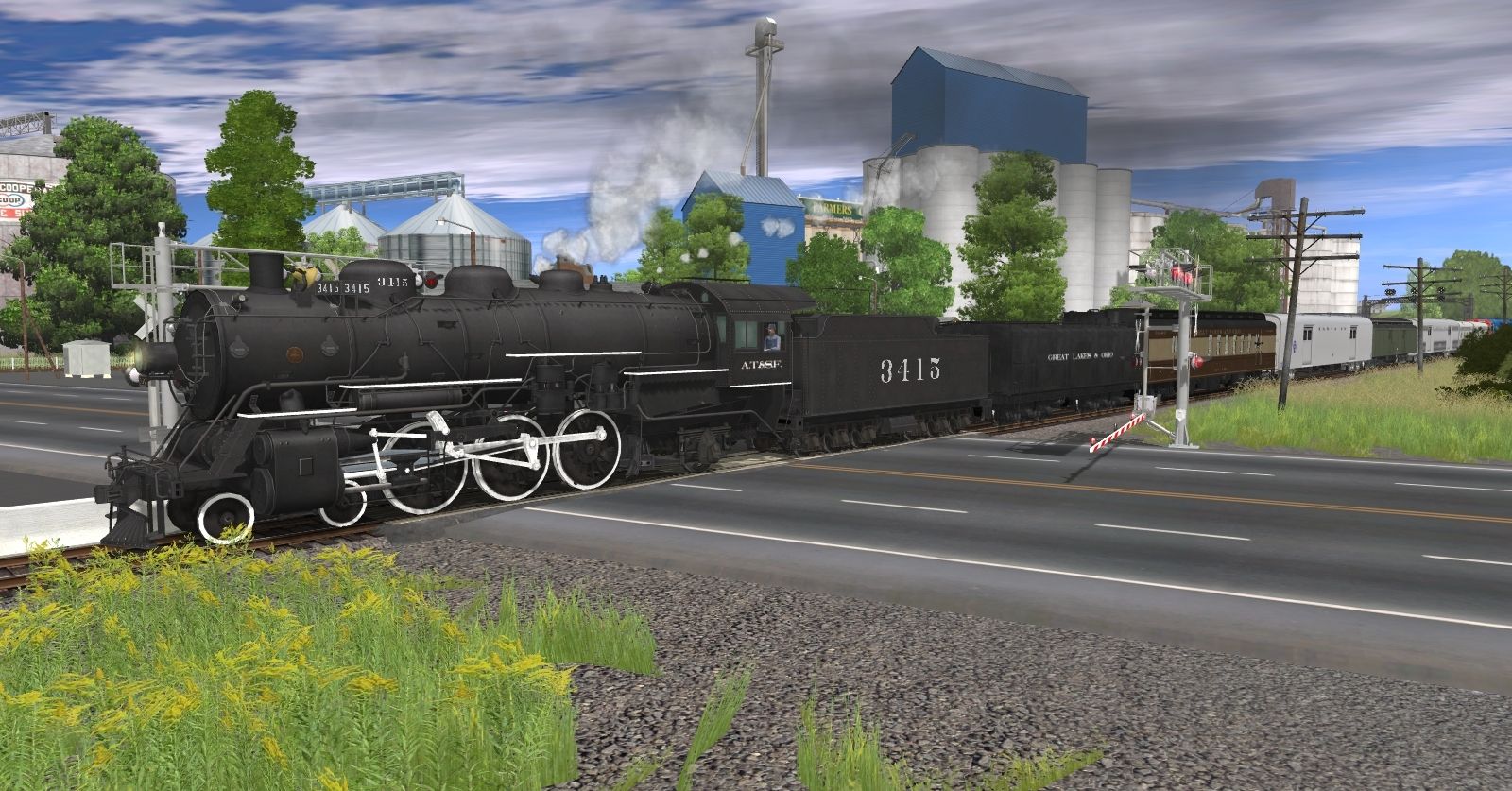 Tags: Trainz: A New Era, PRR Bradford Line, ATSF 3415 (Abilene & Smoky Valley Railroad), GTW EMD SDP40F #9040, GTW EMD SDP40F #9047, ATSF 12000 Gal Tender, GL&O 195 Aux Tender, GL&O Heavyweight OCS Tool Car (Ex-RPO), ATSF Baggage Car 77, ATSF Heavyweight Baggage (3-Axle), PRR N5C Caboose, ATSF SS Baggage Car, ATSF Lightweight Pullman 6-6-4 Shadowlined