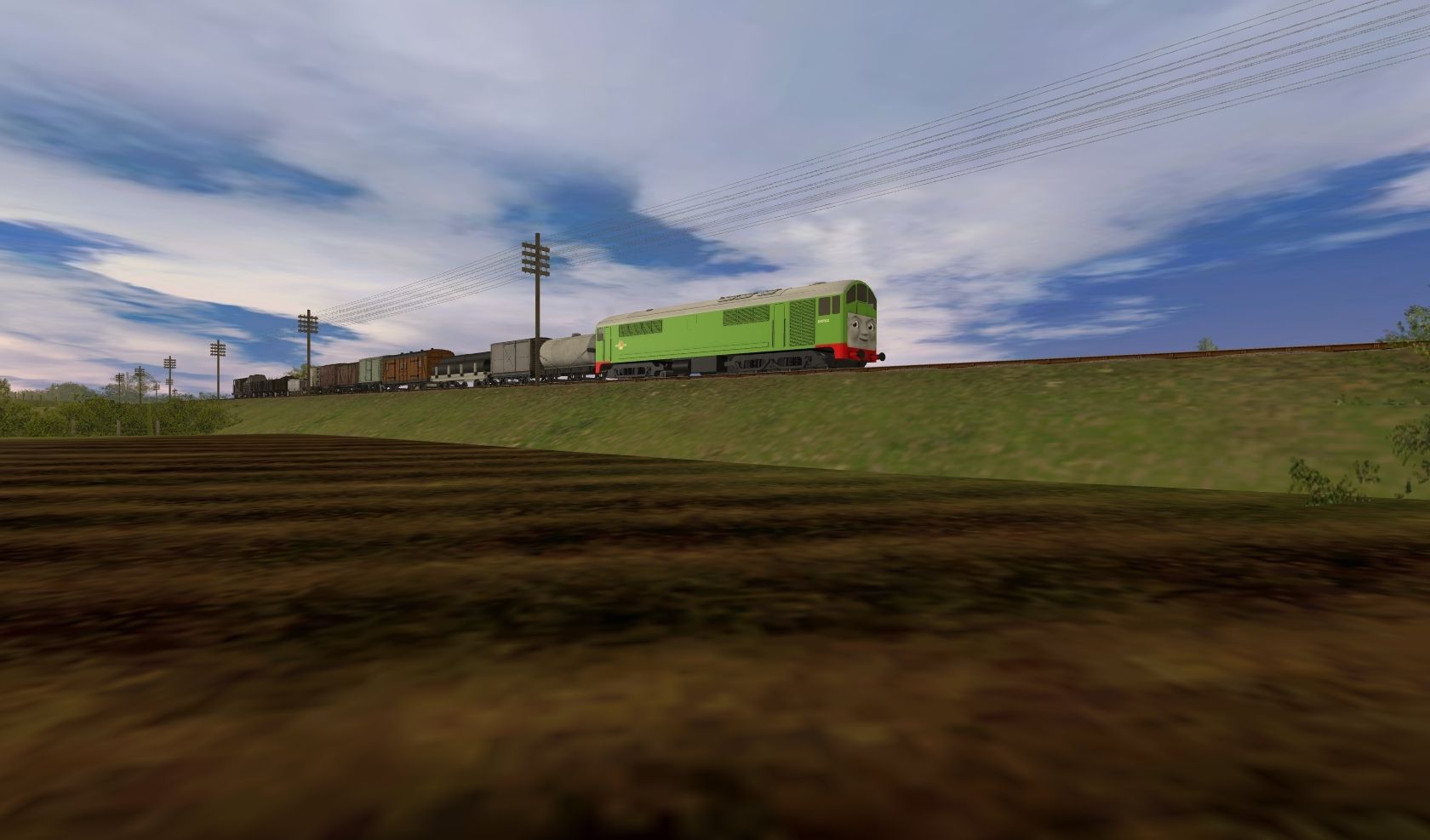 Tags: Trainz: A New Era, IoS - The Kellsthorpe Extension V2, BoCo The Metropolitan Vickers Diesel 2012, Sodor Tank Wagon - Grey, Sodor Box Van - Grey, TRW - GWR J28 Macaw Flatbed (8 Poles), Engie's - TVS SR CCT 4 Wheeled Van (TS12+), Engie's - TVS LNER 12T Van (S8 - Onwards TS12+), BR 12T Standard Van Weathered, BR 13T Conflat A Weathered, PO 5 plank Dibble & Grubb Chigley, Troublesome Truck - Brown (Small Face), Troublesome Truck - Grey (Small Face)