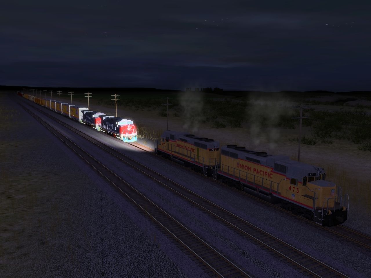 Tags: Trainz: A New Era, Fall Harvest - Nebraska, Midnight Rescue, GP38-2 Union Pacific Weathered DES, Southern Pacific Dash 9, Boxcar HiCube 50ft Union Pacific DES, Boxcar PS-1 40 ft Union Pacific DES, 40ft Stockcar Union Pacific 43334 Ant, 40ft Reefer Union Pacific Automated Raiway #d, 34' Wood XB Union Pacific RR, 3BayWoodChipHopperUnionPacific18278, 3BayWoodChipHopperUnionPacific18277Empty, 40ftBoxcar Union Pacific #, 50ft Boxcar Union Pacific 163535