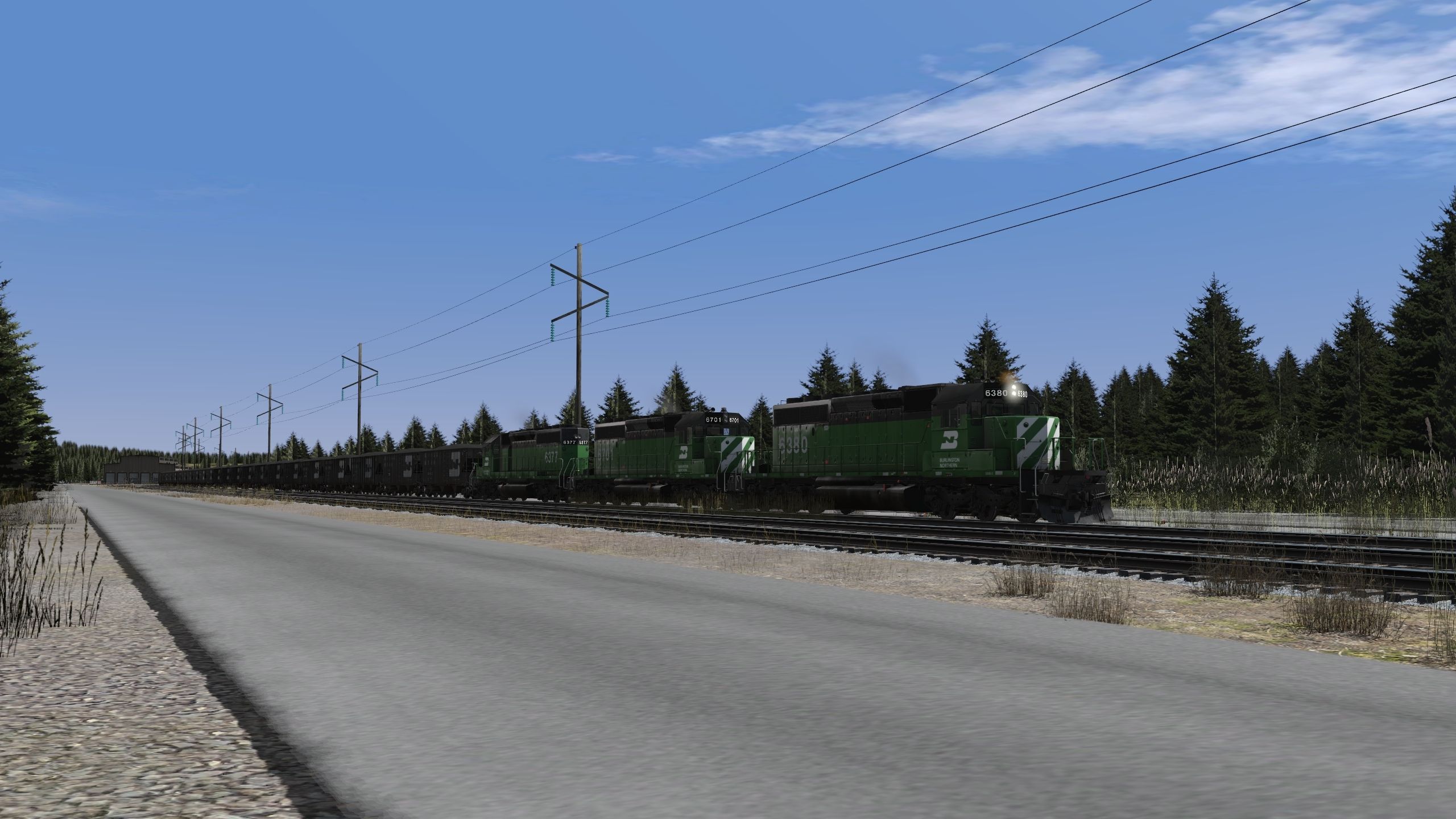 Posted by: epa | Posted:2022-07-19 16:41:07 Caption: Tags: Trainz Railroad Simulator 2022, BN Oasis V1.5, Default, BN SD40-2 1a, BN 100 Ton Hopper