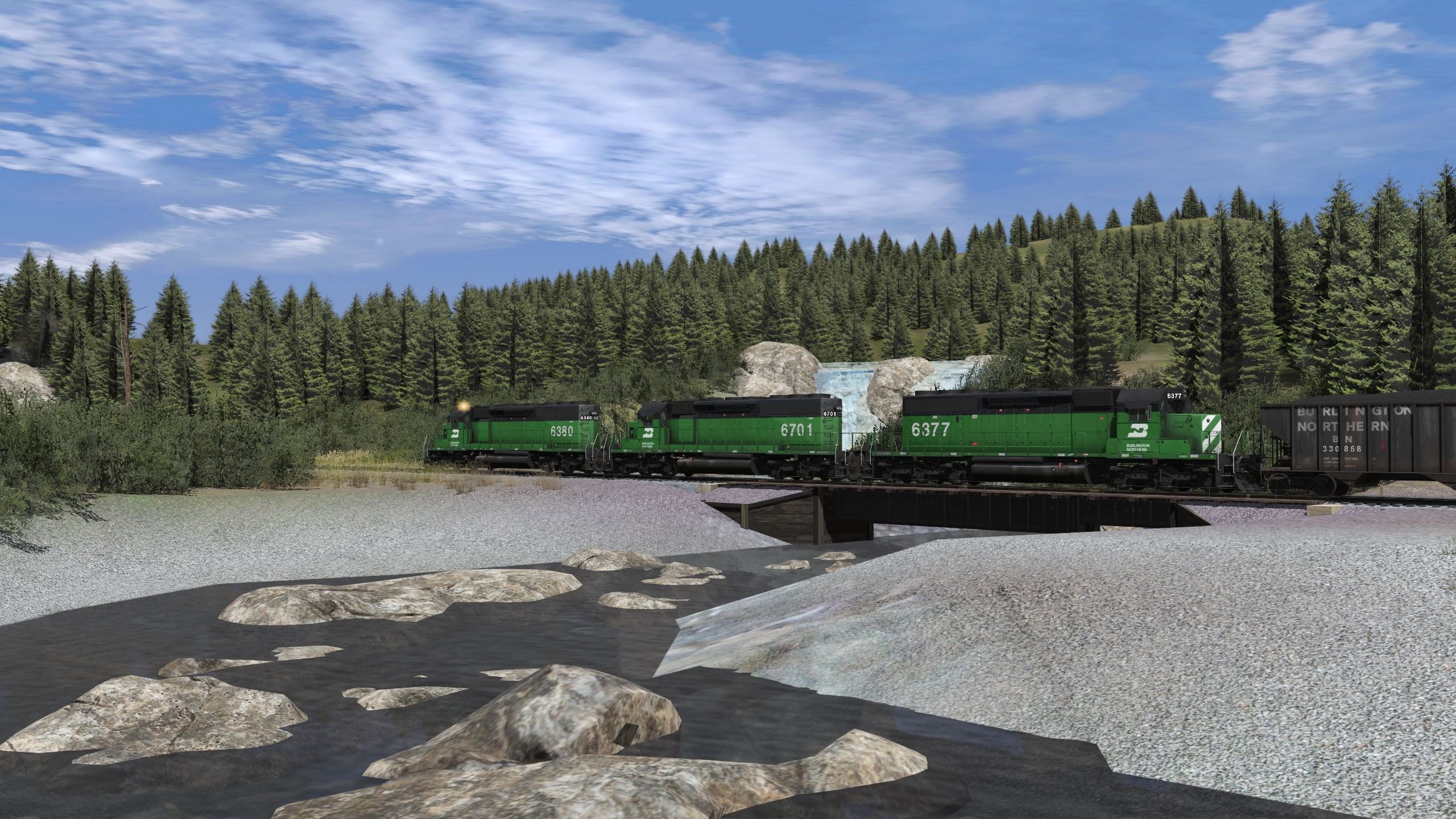 Posted by: epa | Posted:2022-07-19 16:44:37 Caption: Tags: Trainz Railroad Simulator 2022, BN Oasis V1.5, Default, BN SD40-2 1a, BN 100 Ton Hopper