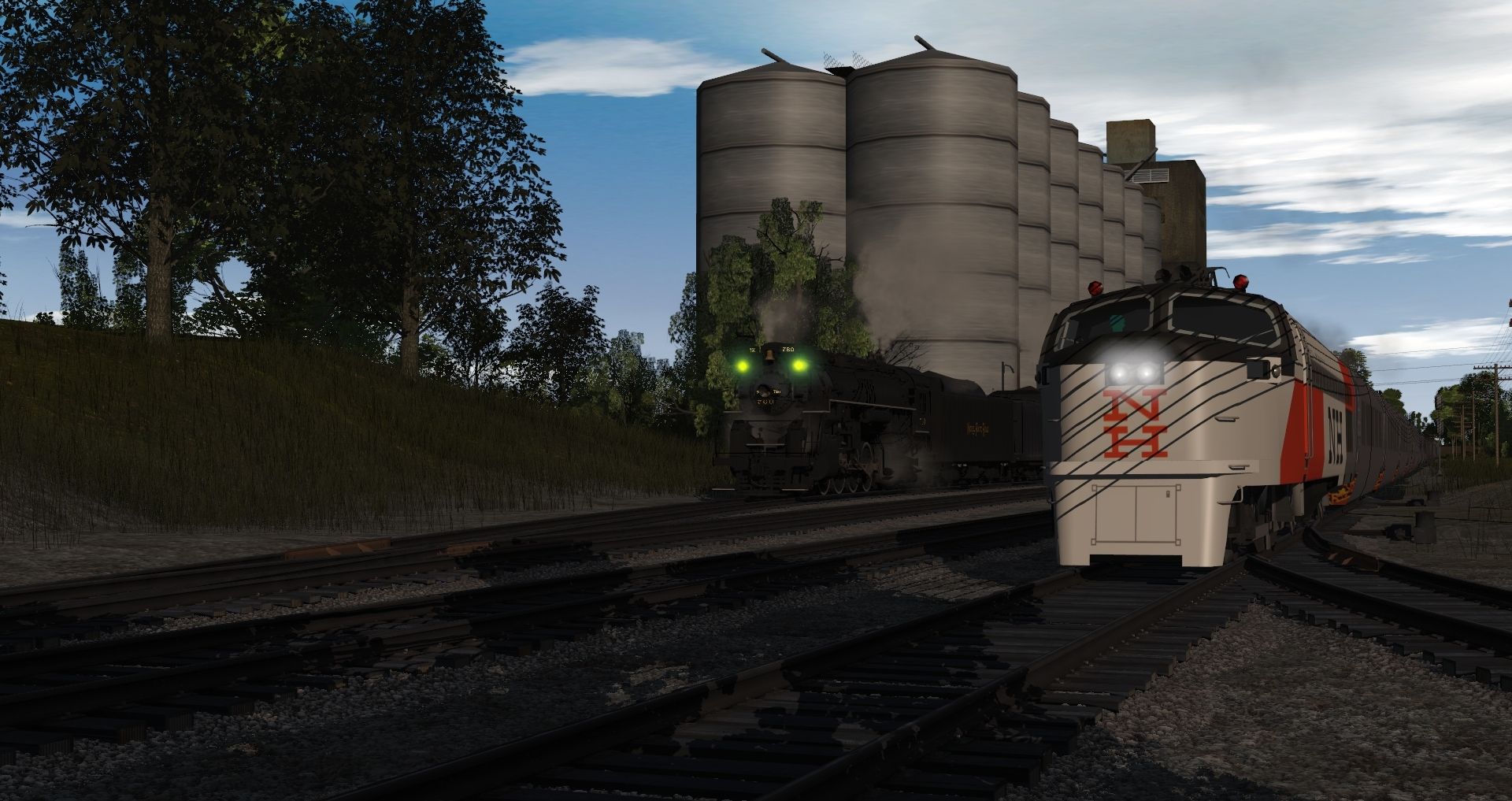Tags: Trainz Railroad Simulator 2019, Midwestern Branch - TRS19, Default, NH 3000 Dan'l Webster Locomotive Updated, MWB Ex OSL Mk-Special Engine (1920) Post Whistle, NKP S-2, NKP S-2 Weathered, MWB I-2c 2-8-2 Postwar, MWB Ex UP Mk-Special 10K Gallon Tender (Late), NKP 40' Boxcar, NKP S-2 Tender, NKP S-2 Tender Weathered, NKP Caboose 400 Series, NH 3000 Dan'l Webster Coach C