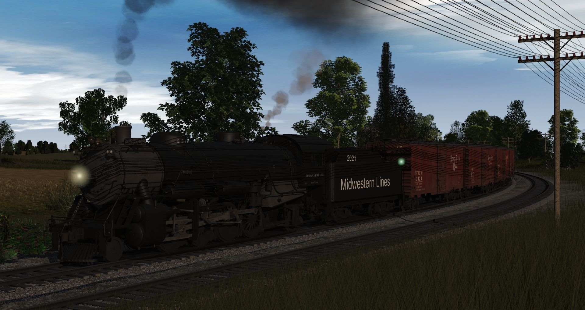 Tags: Trainz Railroad Simulator 2019, Midwestern Branch - TRS19, Default, MWB Ex OSL Mk-Special Engine (1920) Post Whistle, NKP S-2, NKP L1a #170, NKP S-2 Weathered, MWB I-2c 2-8-2 Postwar, NKP Mikado Engine V1, NKP Hudson Engine, MWB Ex UP Mk-Special 10K Gallon Tender (Late), NKP 40' Boxcar, NKP Caboose 400 Series, NKP S-2 Tender