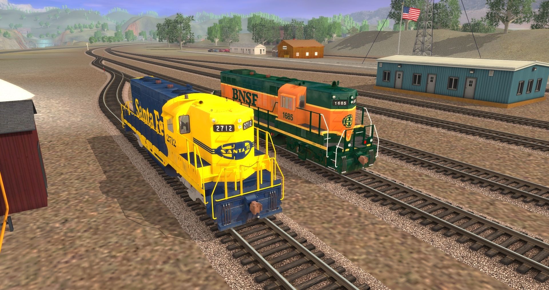 Posted by: Dashboy22 | Posted:2022-07-19 18:34:38 Caption: Tags: Trainz: A New Era, City and Country USA WIP REMASTER V10, EMD GP7 ATSF #2712, EMD GP9 BNSF #1685