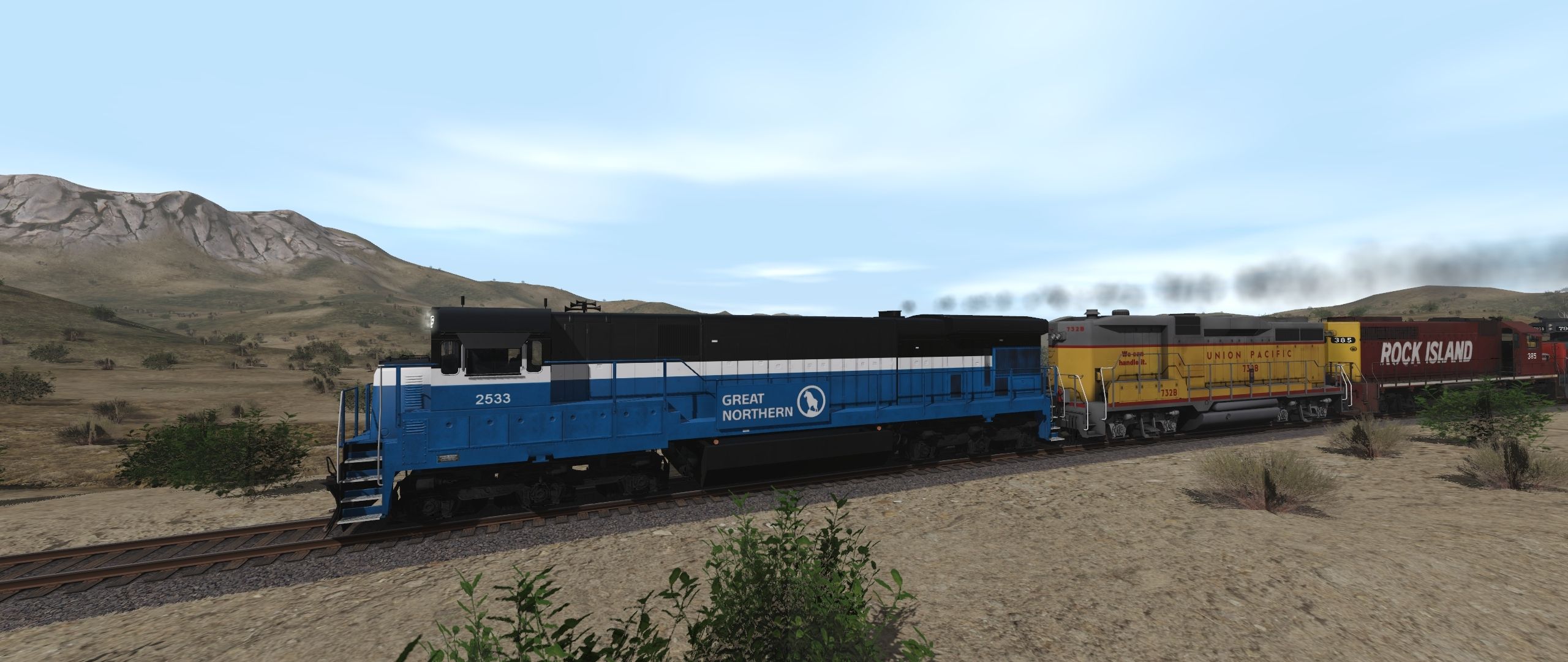 Tags: Trainz Railroad Simulator 2022, Cajon Subdivision - 1990 Part 1: The Pass, Default, GN U33C U33C #2533, GP30: UP #732B, RI GP40 (Maroon/Yellow) Late, SP GP40-2, BNFE White PCF 57' Reefer, BNFE Orange PCF 57' Reefer, UPFE PCF 57' Reefer white dirty, UPFE PCF 57' Reefer, 89ft TOFC Flatcar TTX Long Runner B, 89ft TOFC Flatcar TTX, UP Ce-11 Caboose