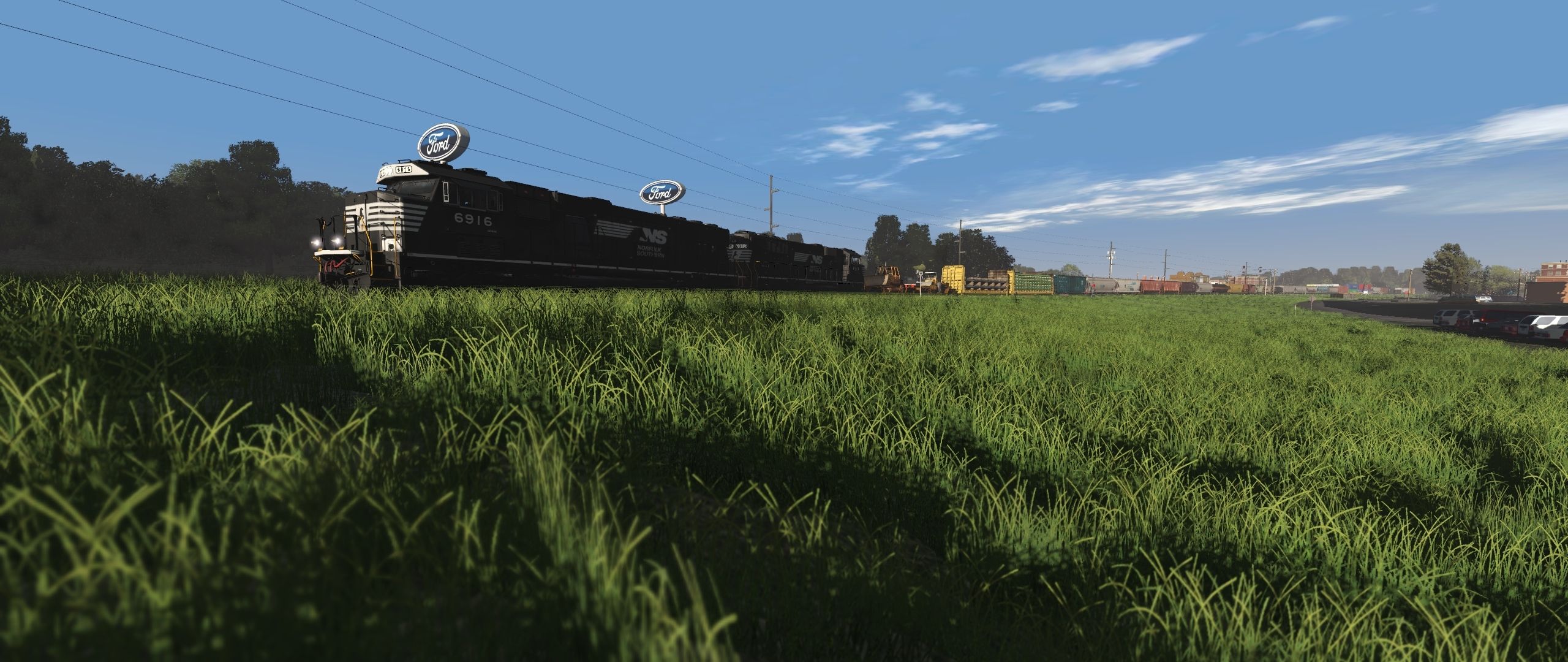Tags: Trainz Railroad Simulator 2022, Norfolk Southern Birmingham East End, Default, NS SD60E, BTVFD QTTX Depressed Flatcar 130911 UP, Bulkhead Flatcar UP 62 ft, Bulkhead Flatcar CNW 62 ft, CAGY 50ft Boxcar FMC, CCBX ACF Centerflow 4 Bay long hatch, CCLX #51045 4 bay ACF, CC 15180 LO 4750 3 Bay Covered Hopper, CC 476115 LO 4750 3 Bay Covered Hopper, CC 766630 LO 4750 3 Bay Covered Hopper, CEFX ACF Centerflow 4 Bay round hatch