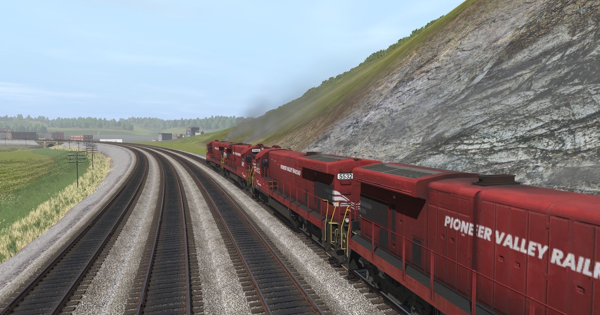 Posted by: Railwoodman | Posted:2022-07-20 18:51:41 Caption: Tags: Trainz Railroad Simulator 2019, Pitts to Philly and More WIP 22a, PVR, PVRX B30-7 Red, PVRX 100 Ton Hopper, PVRX Ce-11 Caboose