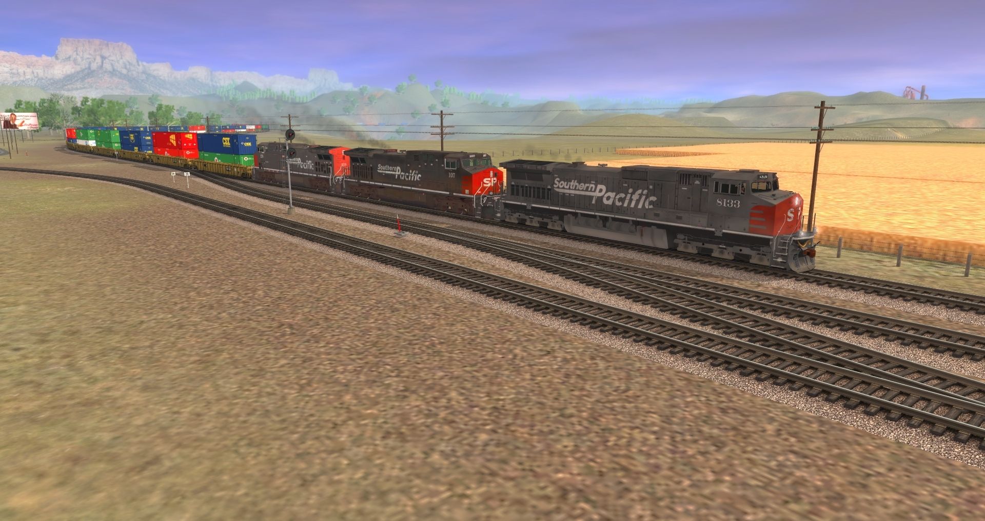 Tags: Trainz: A New Era, City and Country USA WIP REMASTER, SP C44-9W, SP AC4400CW #107, SP AC4400CW #279, SP SD9 #5449, SP SD40 - 1, SP C40-4 Caboose- late version ver. 3, TTX NSC 53 Double stack Well, Invisible Train, 53ft DTTX Wellcar Weathered (Single), 53ft DTTX Wellcar (Single)