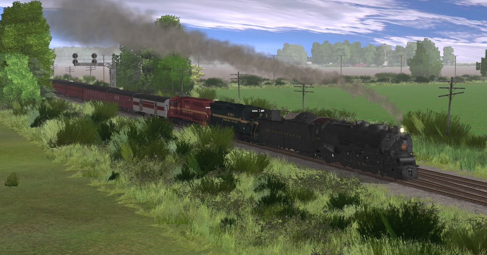 Tags: Trainz: A New Era, PRR Bradford Line, Airbus A300-B4 605R American Airlines startup, PRR M1b Engine, SD45 PRR Brunswick, SD45 PRR Tuscan, PRR M1b Tender, KRR Budd Baggage Car, R&N RPO Powerpak Red Faded, R&N Pullman Sleeper Red Faded, PRR P70 Coach 1032, PRR P70 Coach 1384, PRR Pullman 12-1-1 Postwar
