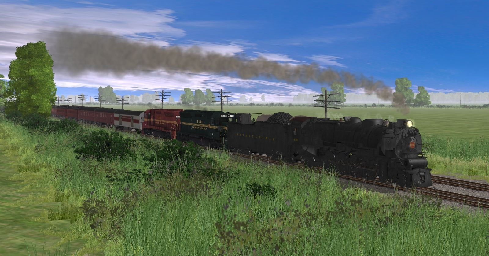 Tags: Trainz: A New Era, PRR Bradford Line, PRR M1b Engine, Airbus A300-B4 605R American Airlines startup, SD45 PRR Brunswick, SD45 PRR Tuscan, PRR M1b Tender, KRR Budd Baggage Car, R&N RPO Powerpak Red Faded, R&N Pullman Sleeper Red Faded, PRR P70 Coach 1032, PRR P70 Coach 1384, PRR Pullman 12-1-1 Postwar