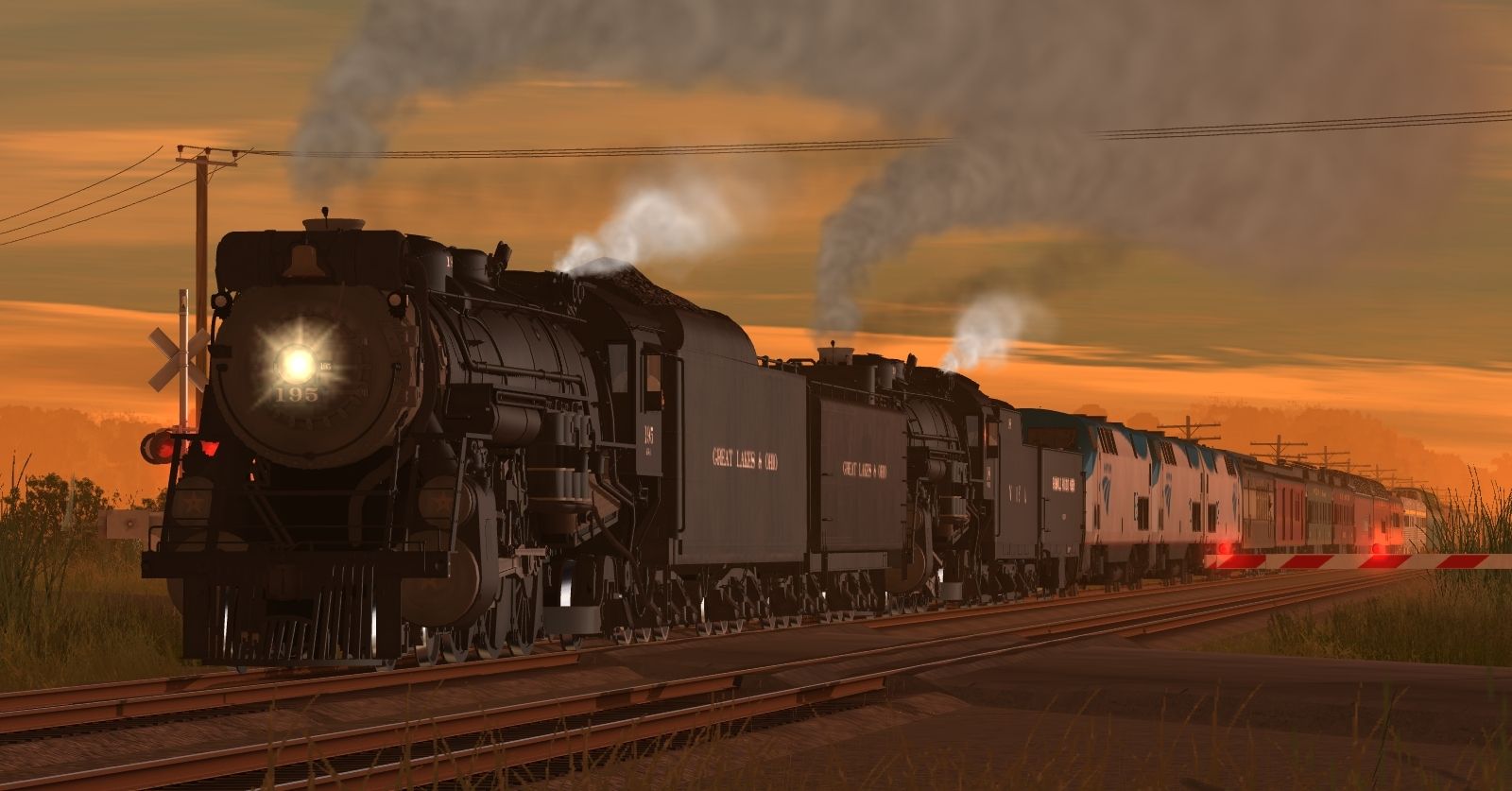 Tags: Trainz: A New Era, PRR Bradford Line, Stearman M4 Startup, GL&O 195 Engine, WofA 190 Engine SP1, AMTK P42DC ph V, GL&O 195 Tender, GL&O 195 Aux Tender, WofA 190 Tender, WofA 190 Aux Tender (RRM), GL&O Heavyweight OCS Tool Car (Ex-RPO), ACE 3000 614T Tool Car, RDG 10 President's Car
